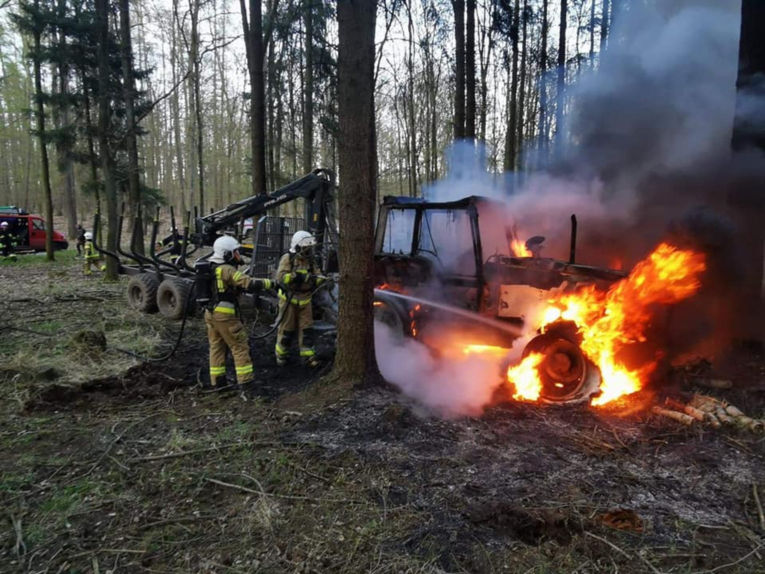 Działania zastępów straży pożarnej polegały na zabezpieczeniu miejsca zdarzenia oraz na podaniu prądu piany ciężkiej na palący się sprzęt leśników.