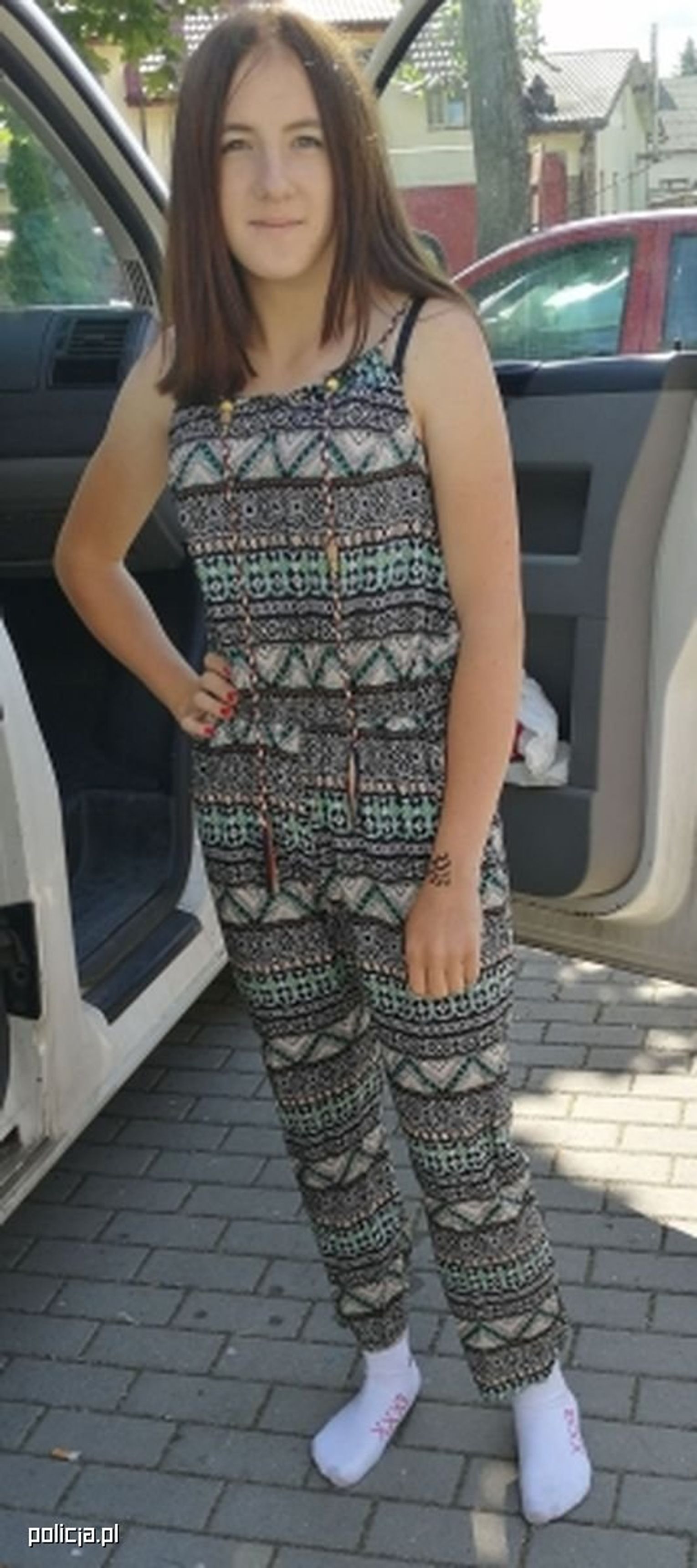 W dniu zaginięcia ubrana była w spodnie typu dres koloru czarnego z czerwonym sznurkiem na lewej nogawce, bluzę typu polar koloru czarnego z żółtym kołnierzem od wewnętrznej strony, obuwie typu trapery koloru czarnego wiązane z bocznymi zamkami.