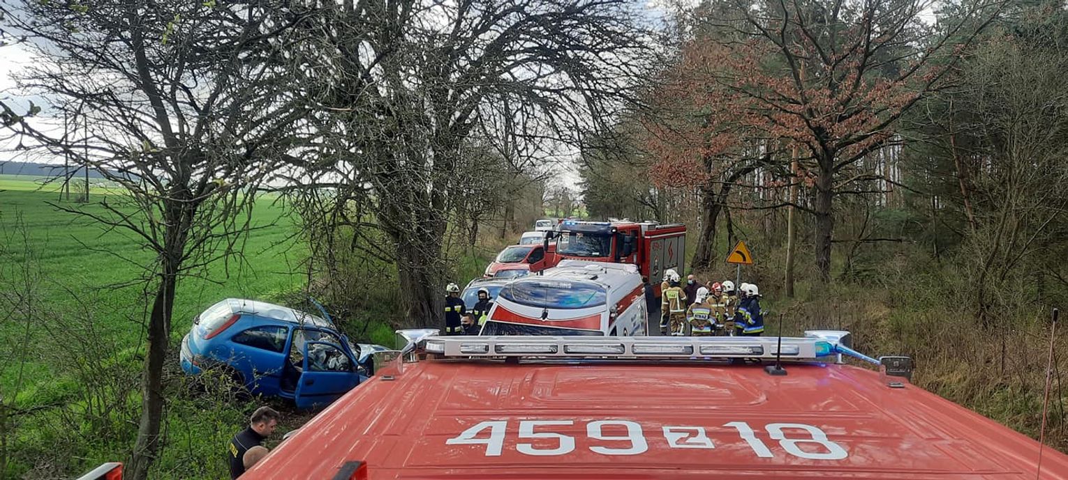Rannego kierowcę wyciągnęli z pojazdu strażacy. Poszkodowany został przetransportowany do szpitala.