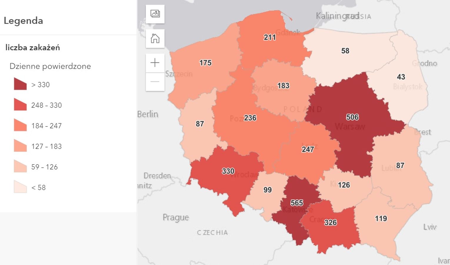 Dzisiaj w naszym województwie odnotowano nieco niższą na tle w kraju liczbę zakażeń na 10 tys. mieszkańców. Współczynnik ten wynosi . W związku z tym nasze województwo na mapie zakażeń jest zaznaczone nieco jaśniejszym kolorem.