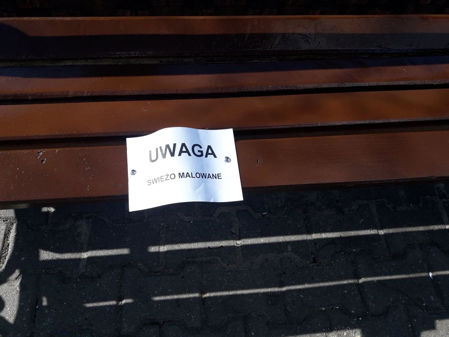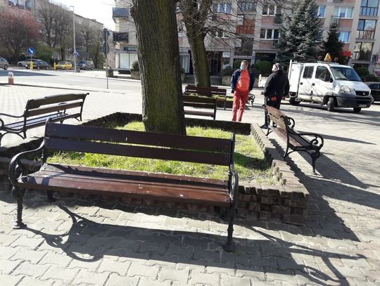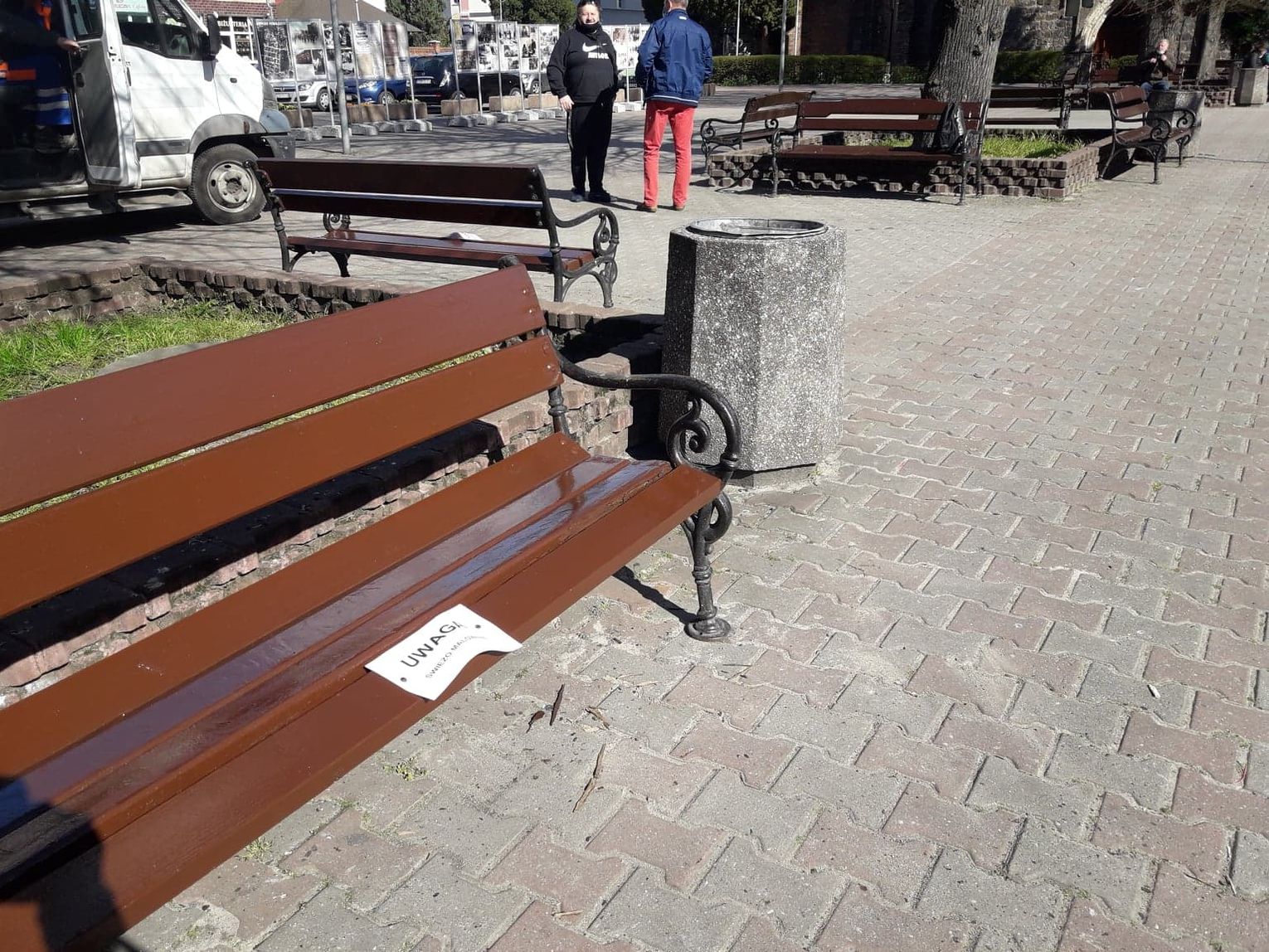 Malowanie ławek zaczęli od pl. Ks. Barnima I w Gryfinie. Jednak w nocy są temperatury minusowe. Czy ławki mają czas wyschnąć? - pytają czytelnicy.