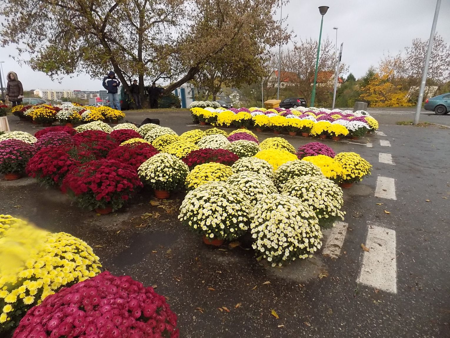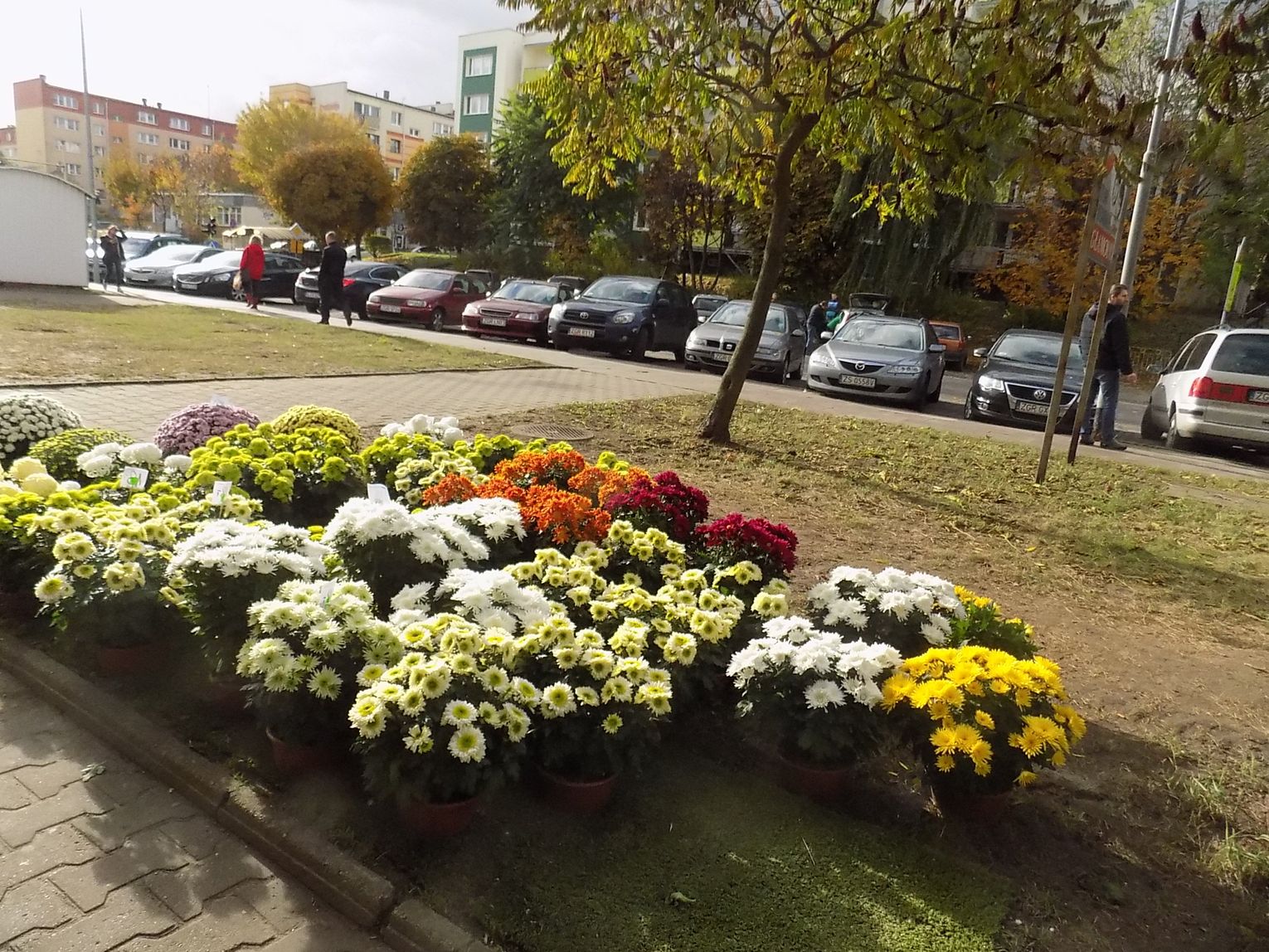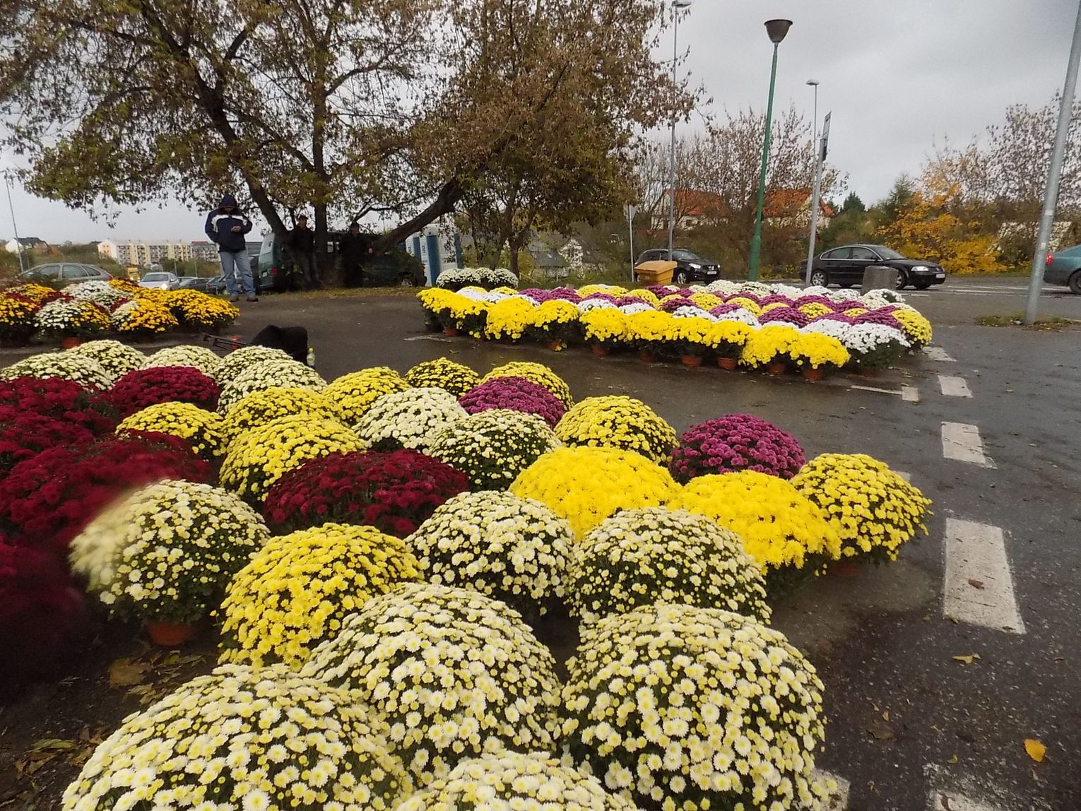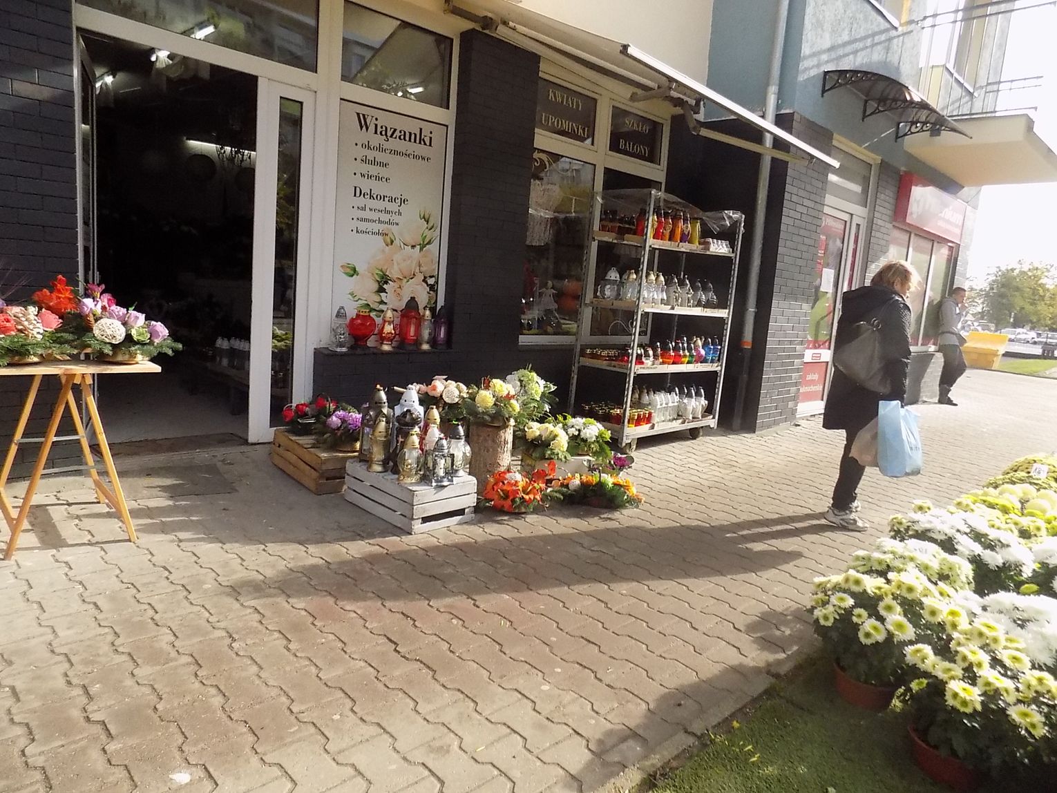 Najchętniej kupowane są białe i różnokolorowe. Cena od 8 do 20 zł w zależności od wielkości. Żywe, cięte czerwone róże po pięć zł sztuka. Zniczy też tutaj na razie tylko jeden stragan. Jutro będzie więcej. Ruch również ruch będzie większy.