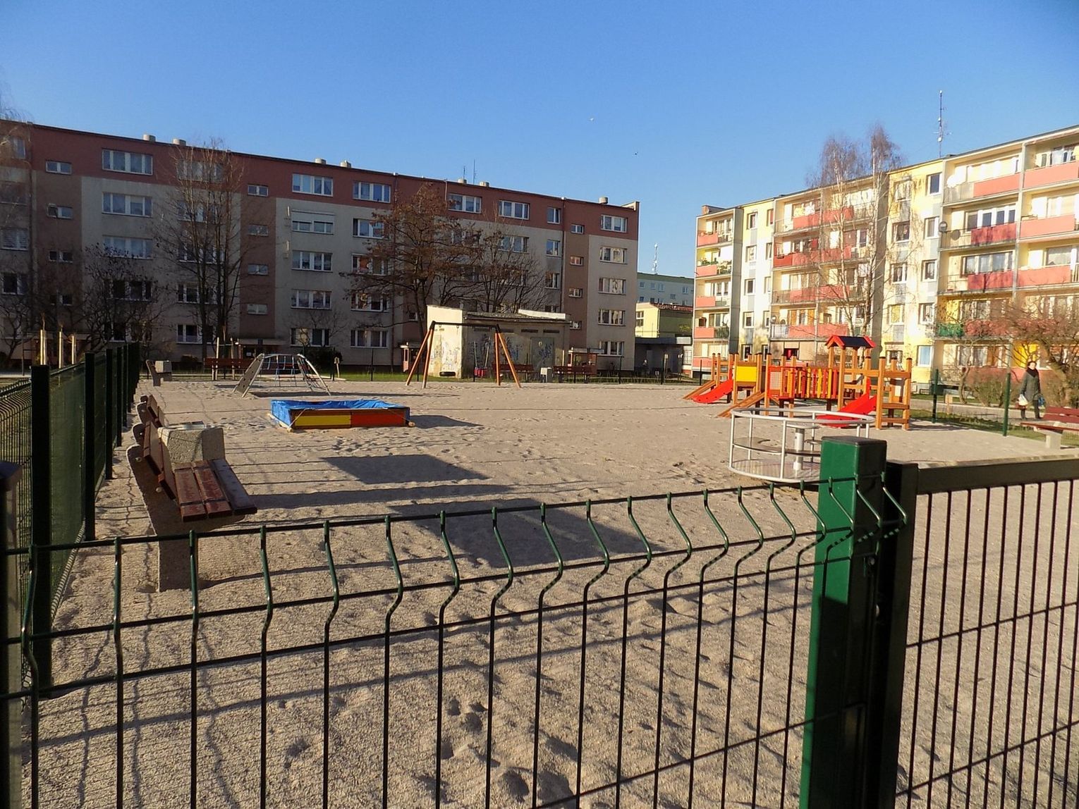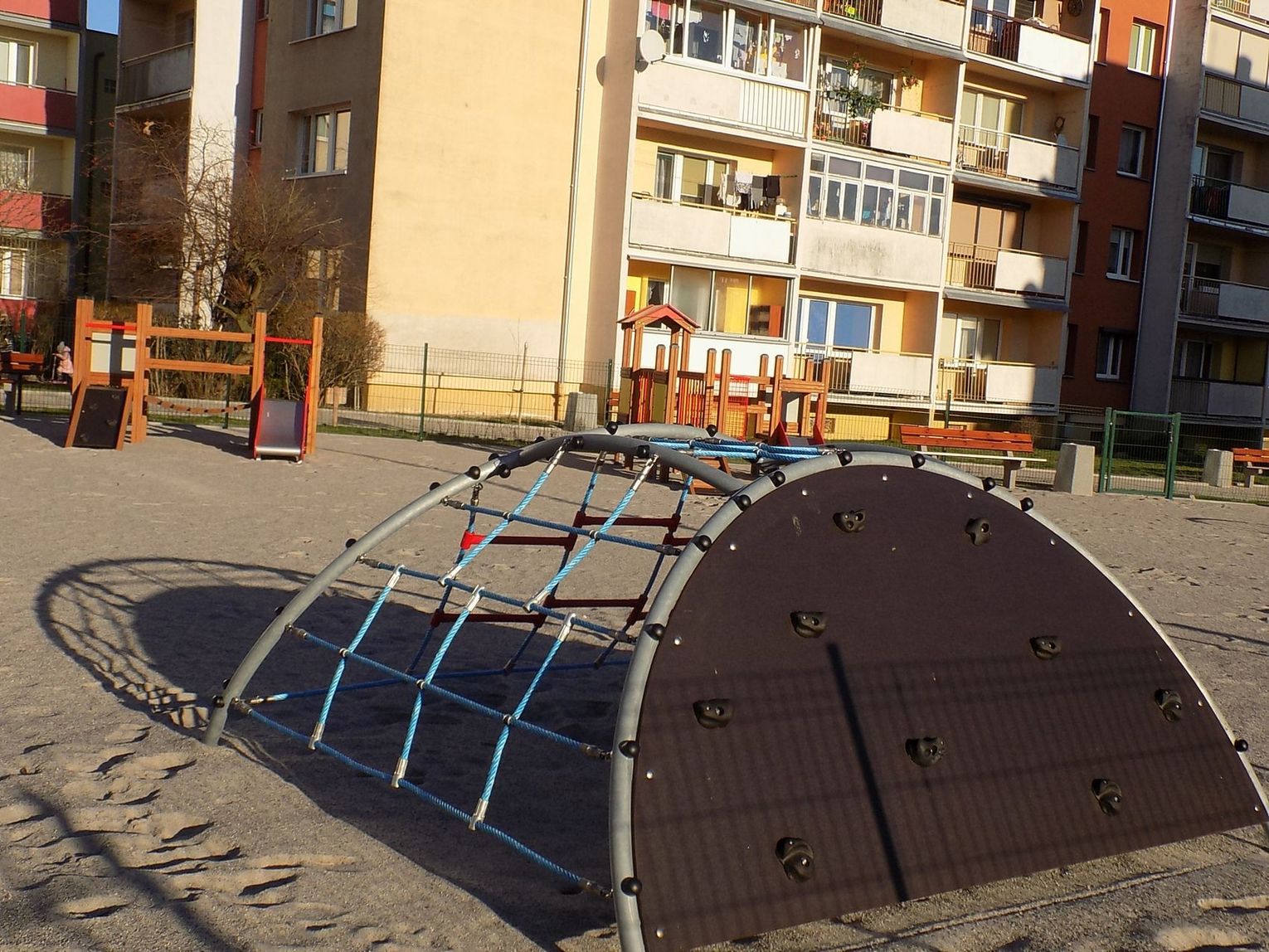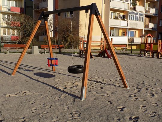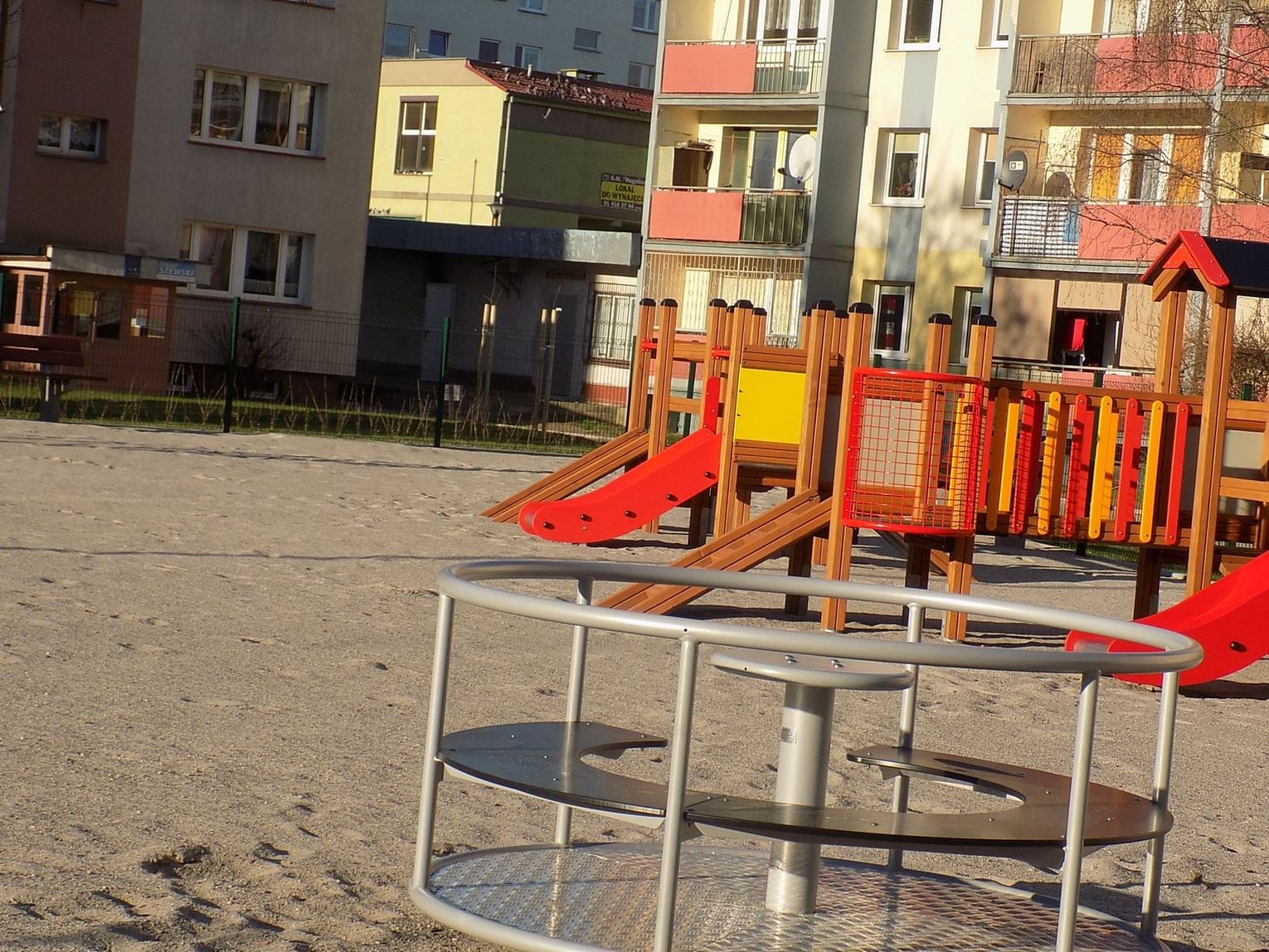 Żeby maluchy nie wnosiły pretensji, obok placu powstał duży, ładnie urządzony plac zabaw. Zasiano nawet na nim trawę z nadzieją, że nagły mróz jej nie zaszkodzi i wiosną się zazieleni. Wokół parkingu i placu zabaw wszystko zostało bardzo pomysłowo zagospodarowane.