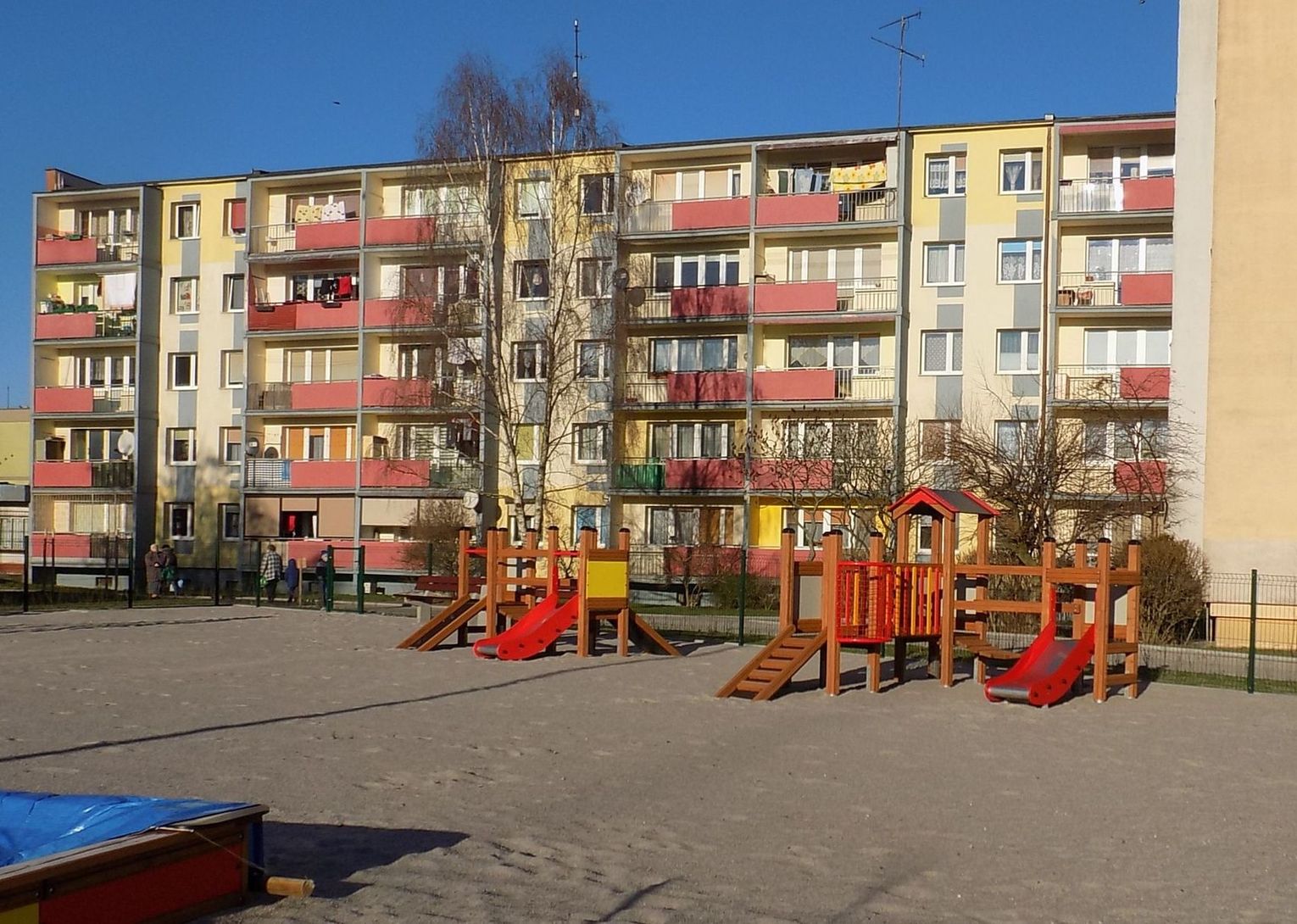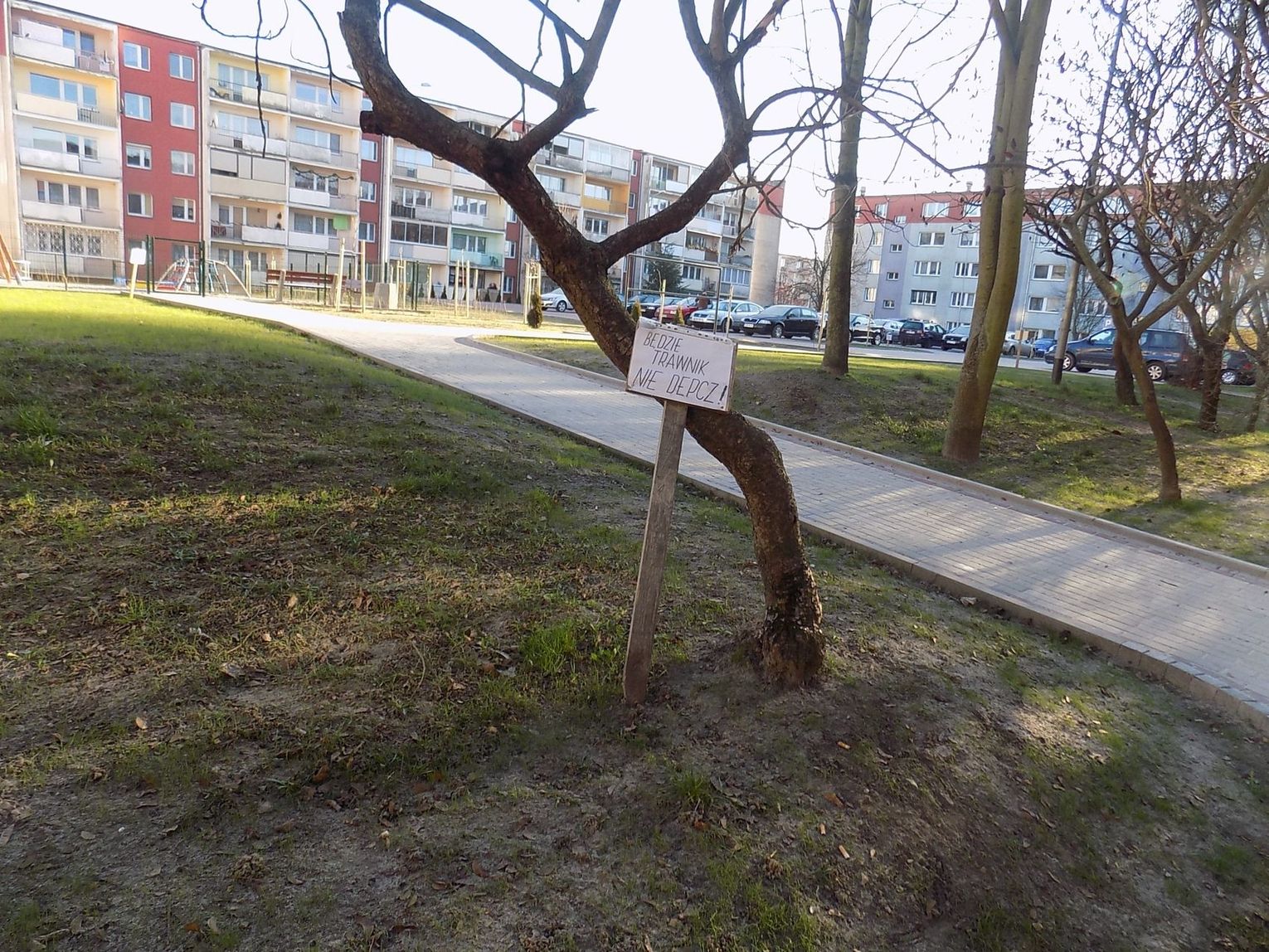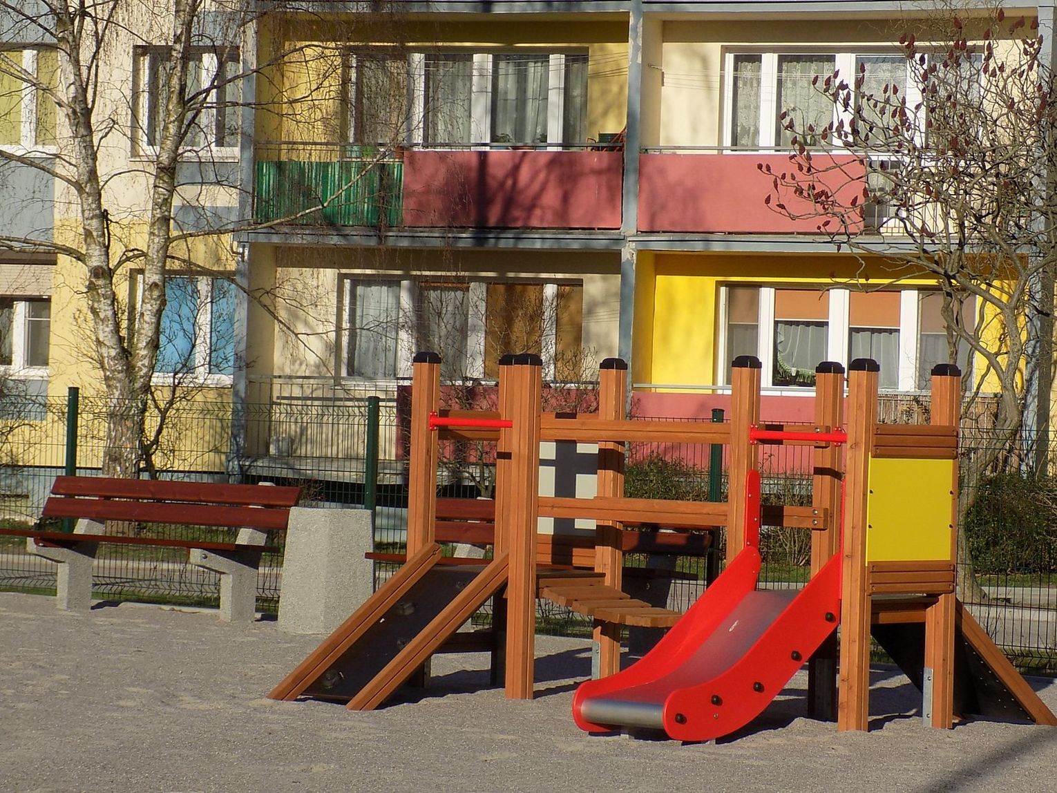 Żeby maluchy nie wnosiły pretensji, obok placu powstał duży, ładnie urządzony plac zabaw. Zasiano nawet na nim trawę z nadzieją, że nagły mróz jej nie zaszkodzi i wiosną się zazieleni. Wokół parkingu i placu zabaw wszystko zostało bardzo pomysłowo zagospodarowane.