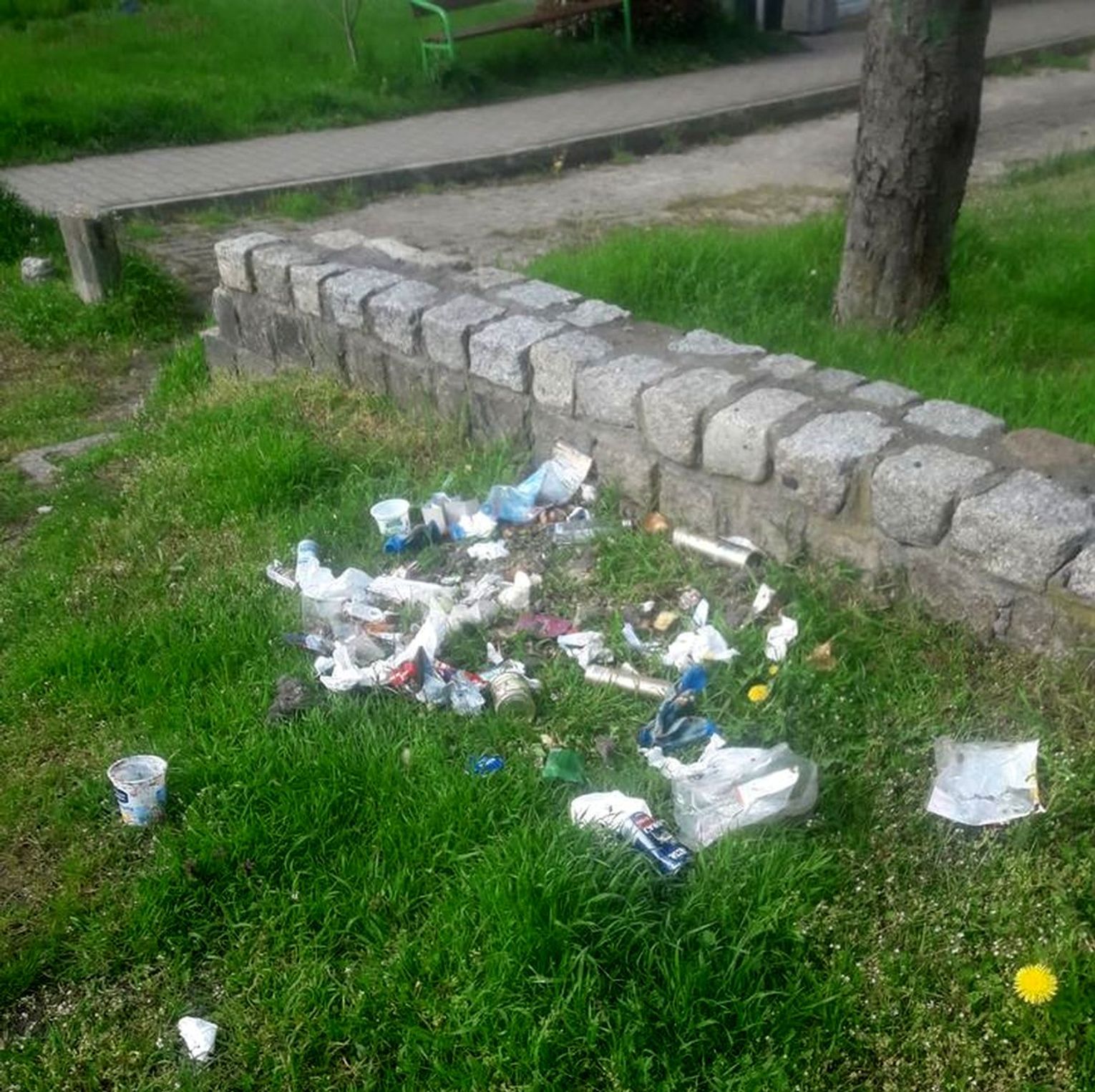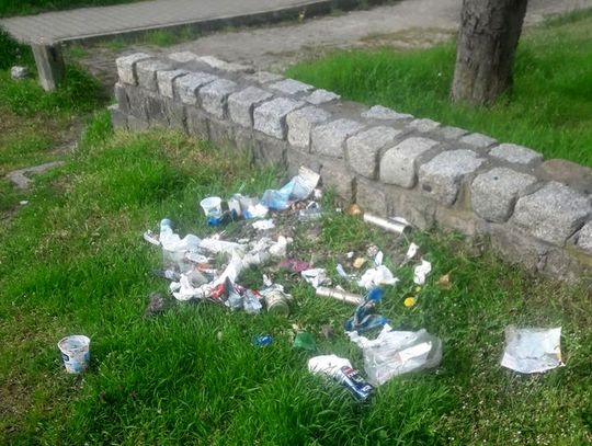 Niechlujnego i leniwego właściciela tych odpadów prosimy aby pozbierał to, co zostawił po sobie i wrzucił do odpowiedniego pojemnika.