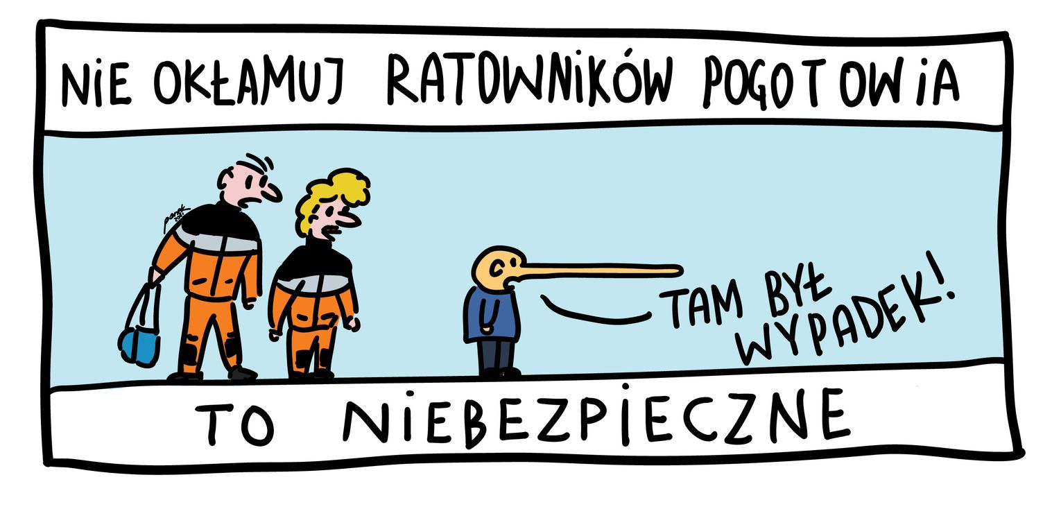 - Kiedy zgłosiła się do mnie Wojewódzka Stacja Pogotowia Ratunkowego w Szczecinie, zareagowałem bardzo pozytywnie – mówi Tomasz Panek. – Wielką satysfakcję sprawiają mi współprace, które pojawiają się w przestrzeni publicznej i „wychodzą” z Internetu. Przede wszystkim jednak lubię, gdy moje z pozoru banalne rysunki niosą za sobą większą wartość i są społecznie przydatne. Jeżeli chodzi o temat ratownictwa medycznego to przyznam szczerze, że jestem szczęśliwcem, który nigdy nie miał do czynienia z pogotowiem, tym bardziej byłem zaskoczony tematami, które otrzymałem. Usiłowanie wykorzystania karetki jako taksówki czy okłamywanie ratowników w sytuacji wymagającej pomocy wydawały mi się wyłącznie medialnymi pojedynczymi przypadkami a nie zwykłą rzeczywistością ratowników. Poza wielką satysfakcją z tworzenia mam nadzieję, że wspólnie uda nam się zwiększyć świadomość wśród obiorców i ktoś kiedyś będąc w potrzebie, w momencie dużego stresu, przypomni sobie „śmieszny obrazek z internetu” i będzie wiedział, co robić.