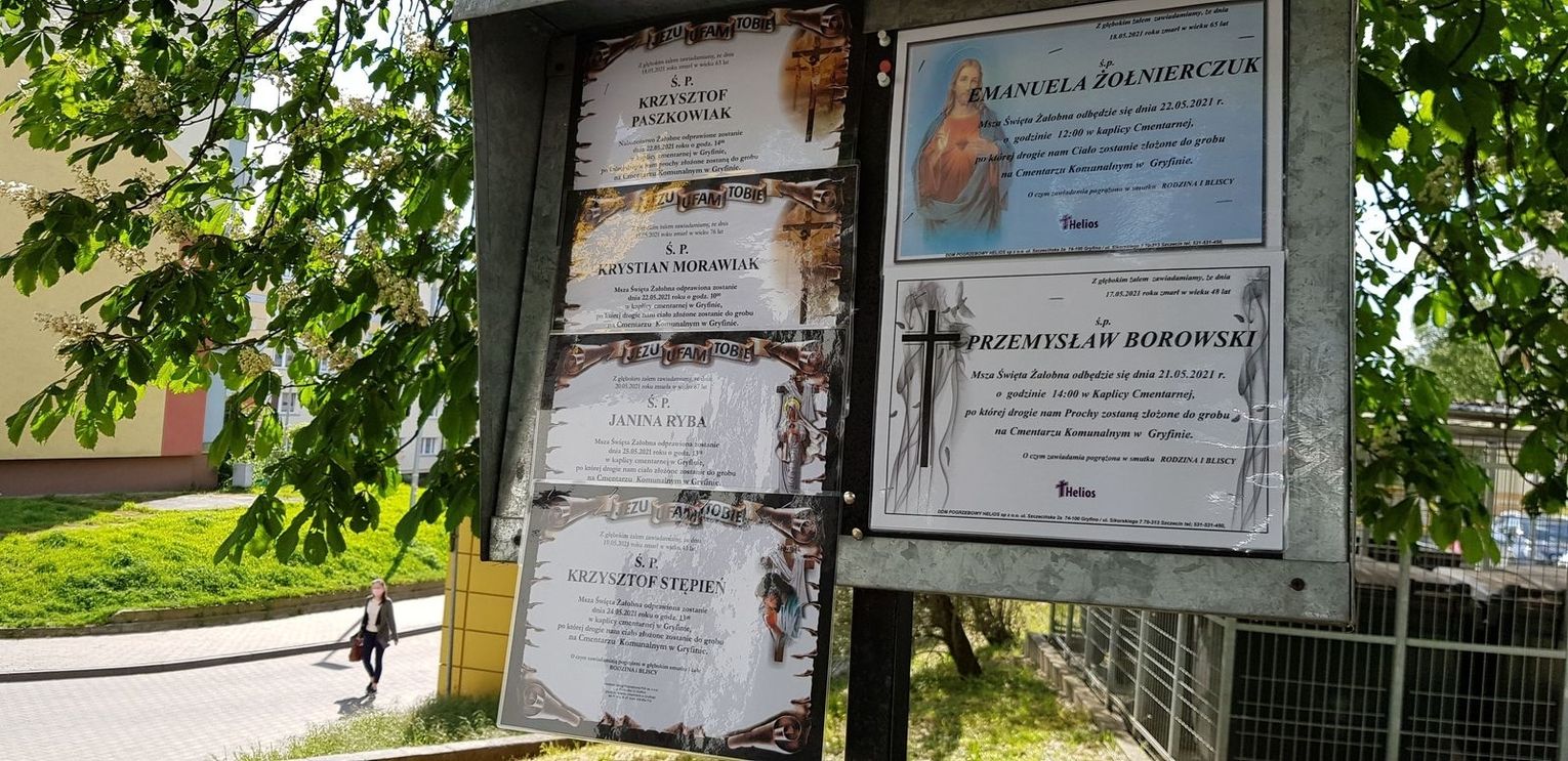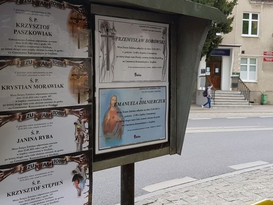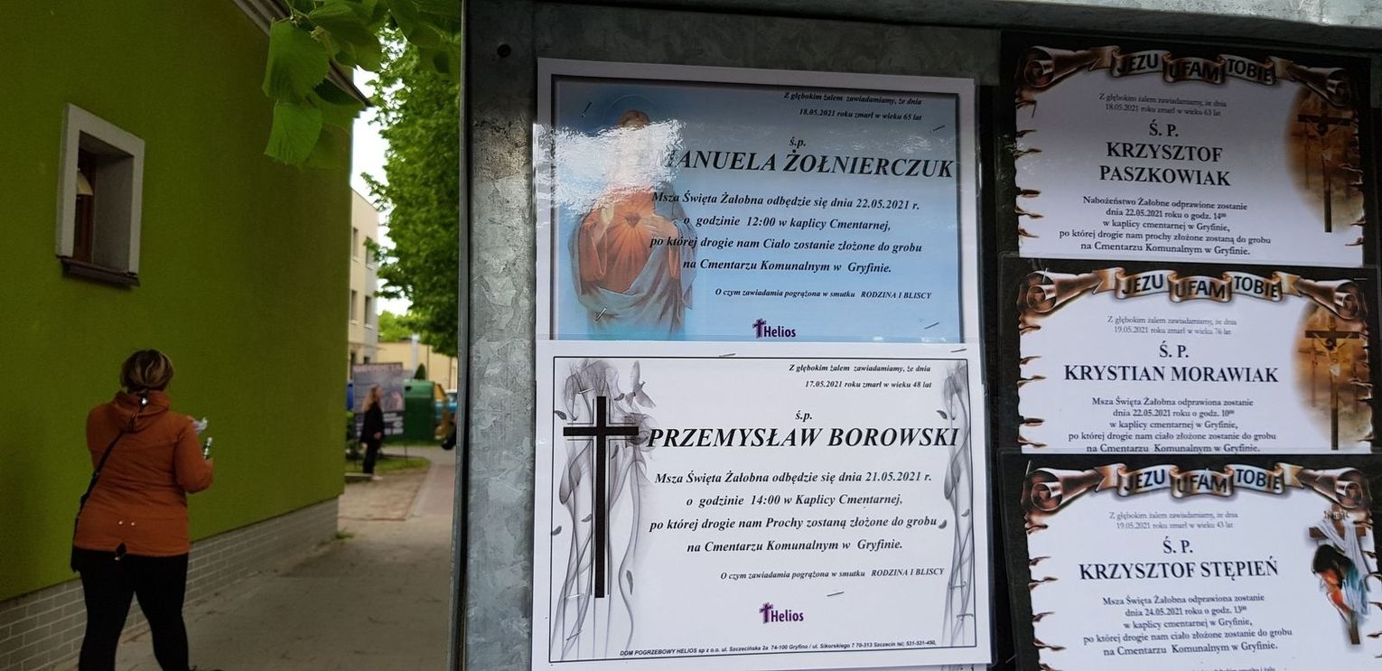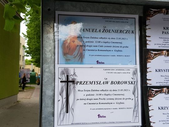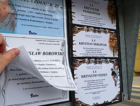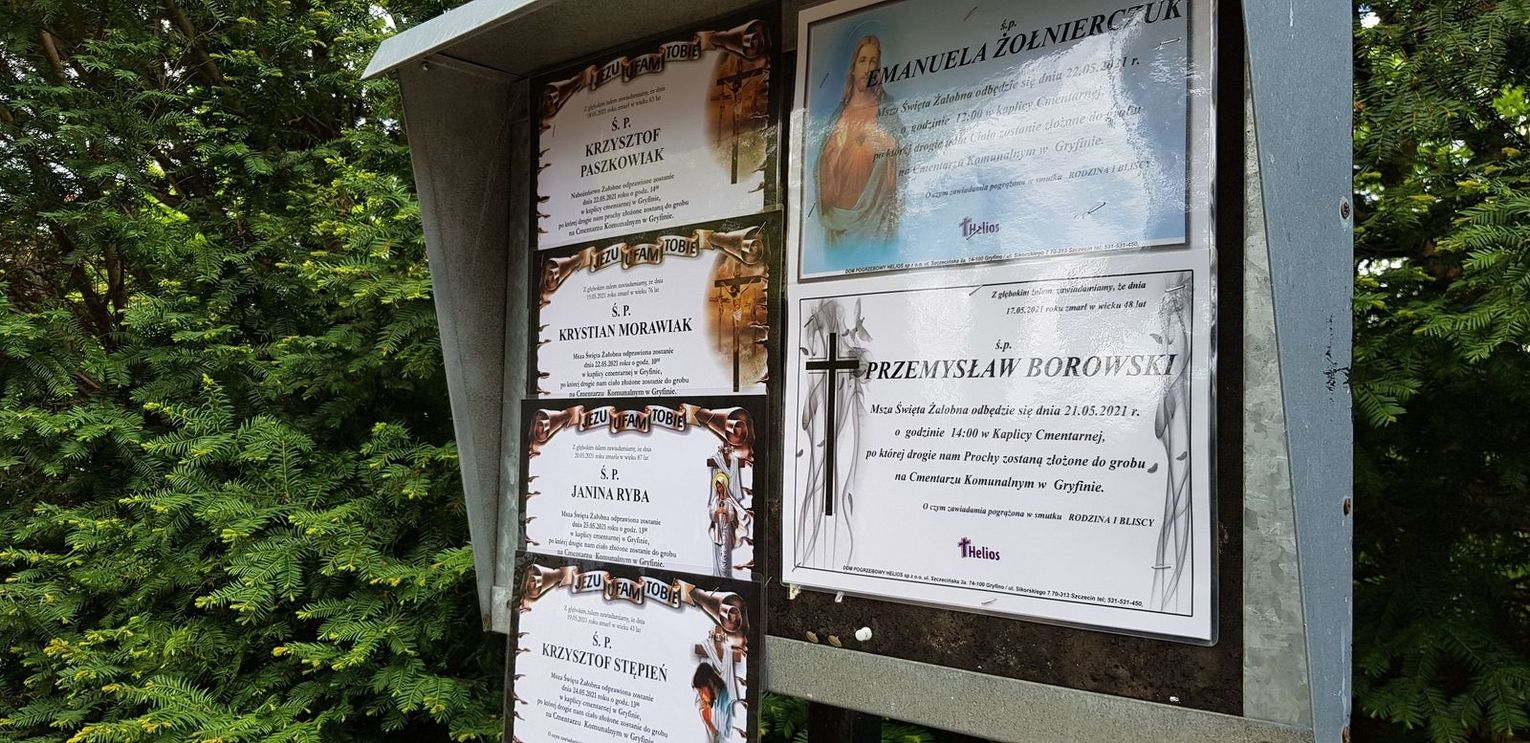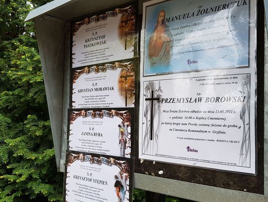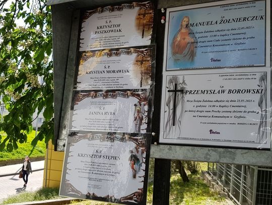 Dziś 21 maja 2021 r. na tablicach umieszczono informacje o pogrzebach następujących mieszkańców, są to: