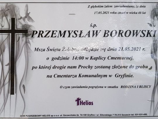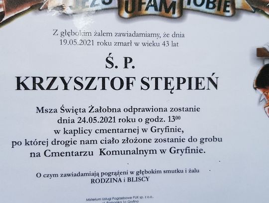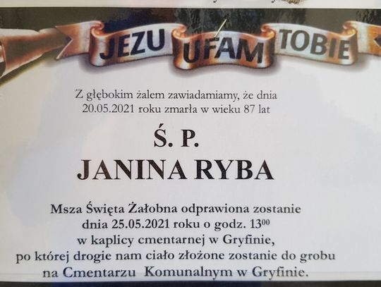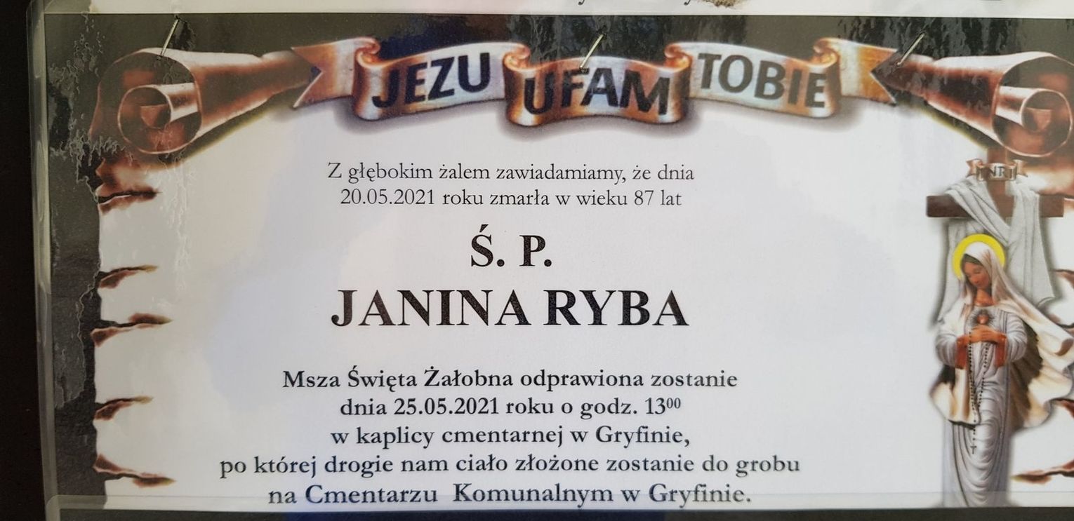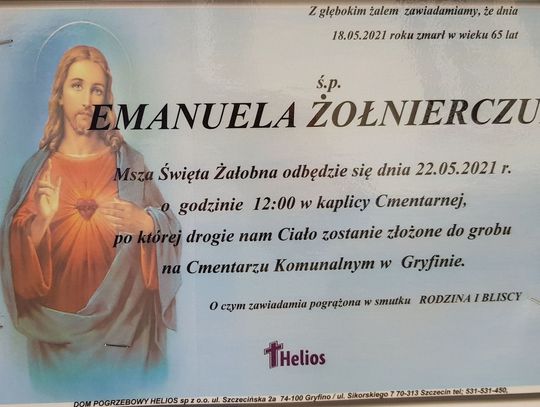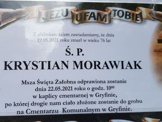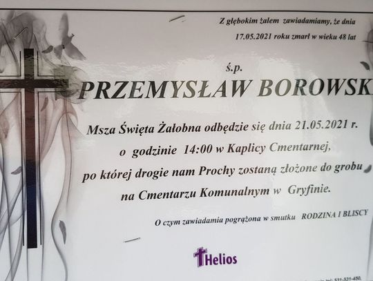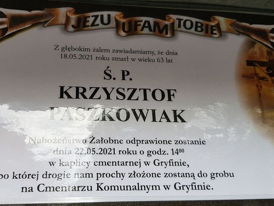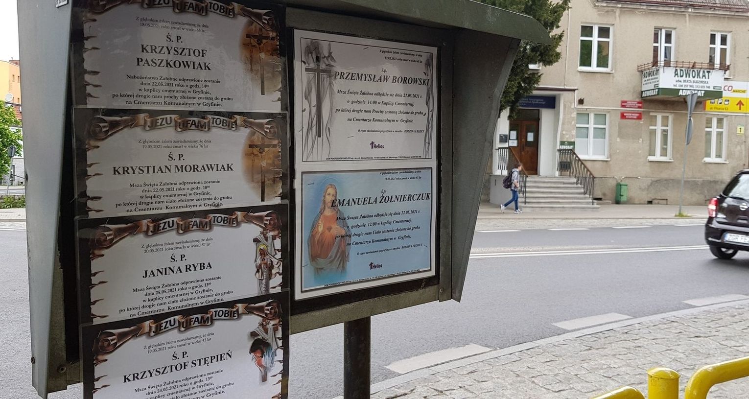 Dziś 21 maja 2021 r. na tablicach umieszczono informacje o pogrzebach następujących mieszkańców, są to: