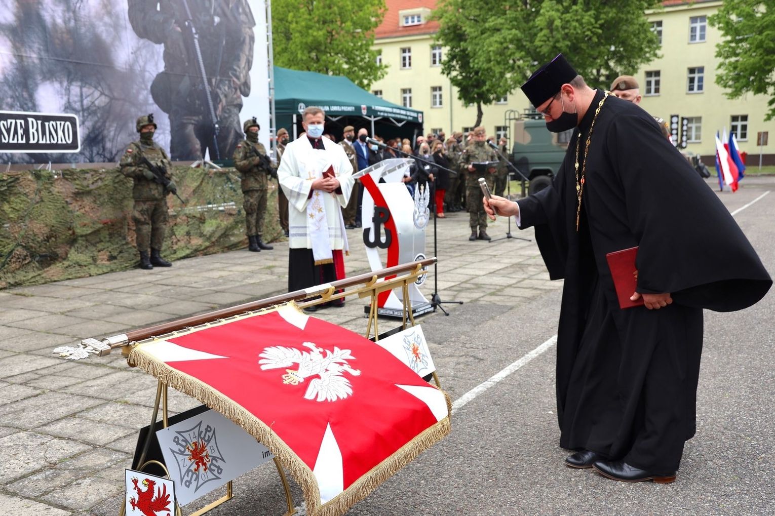 Uroczystość była szczególna także z innego powodu. 14 Zachodniopomorska Brygada Obrony Terytorialnej otrzymała, jako pierwsza jednostka WOT w Polsce, Chorągiew Wojska Polskiego. Dowódcy 14 ZBOT przekazał ją zastępca Dowódcy Wojsk Obrony Terytorialnej płk Maciej Klisz. Sztandar poświęcili wspólnie księża: katolicki Marian Augustyn i prawosławny kapelan 14ZBOT Jarosław Biryłko.