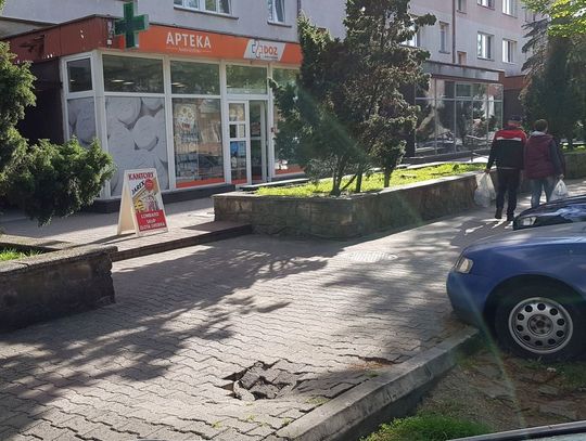 W fotogalerii: dziura w chodniku - jeszcze w zeszłym tygodniu stanowiła zagrożenie dla pieszych.