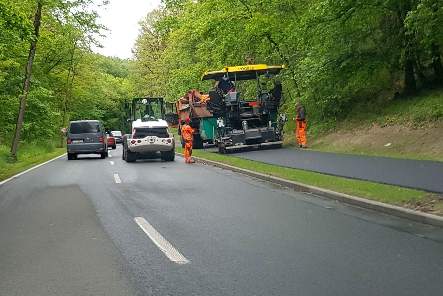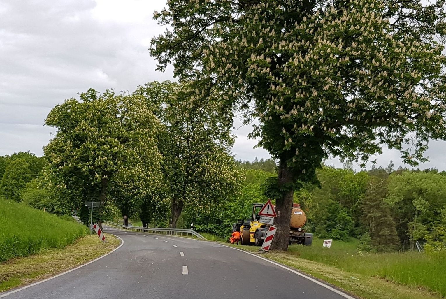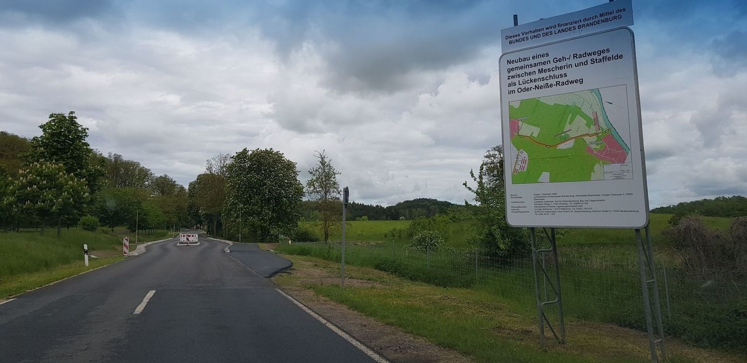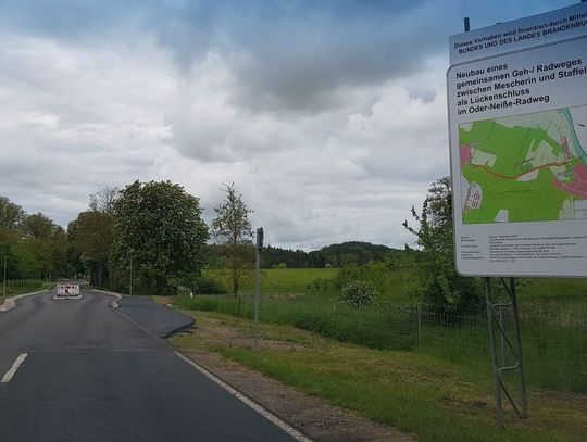 W Mescherin trwa budowa ścieżki rowerowej wzdłuż drogi krajowej B113. I tutaj możemy się zatrzymać na światłach, ponieważ od czasu do czasu zajmowany jest pas jezdni. Co ciekawe, ścieżkę buduje teraz polska firma - Eurovia.