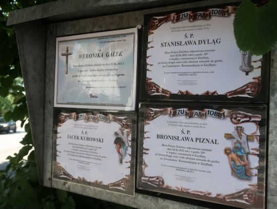 Szczegóły o pogrzebach na klepsydrach w fotogalerii.