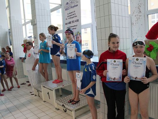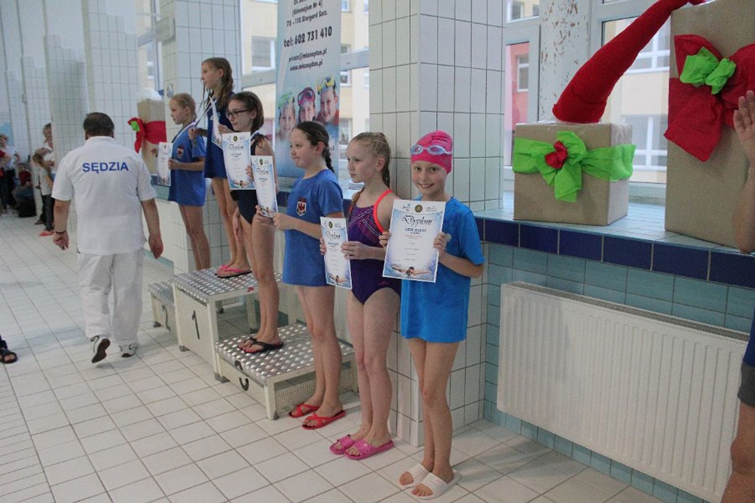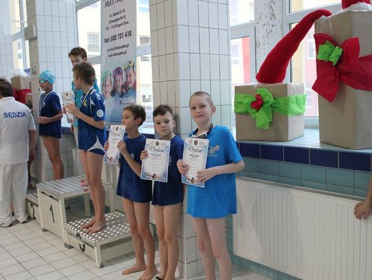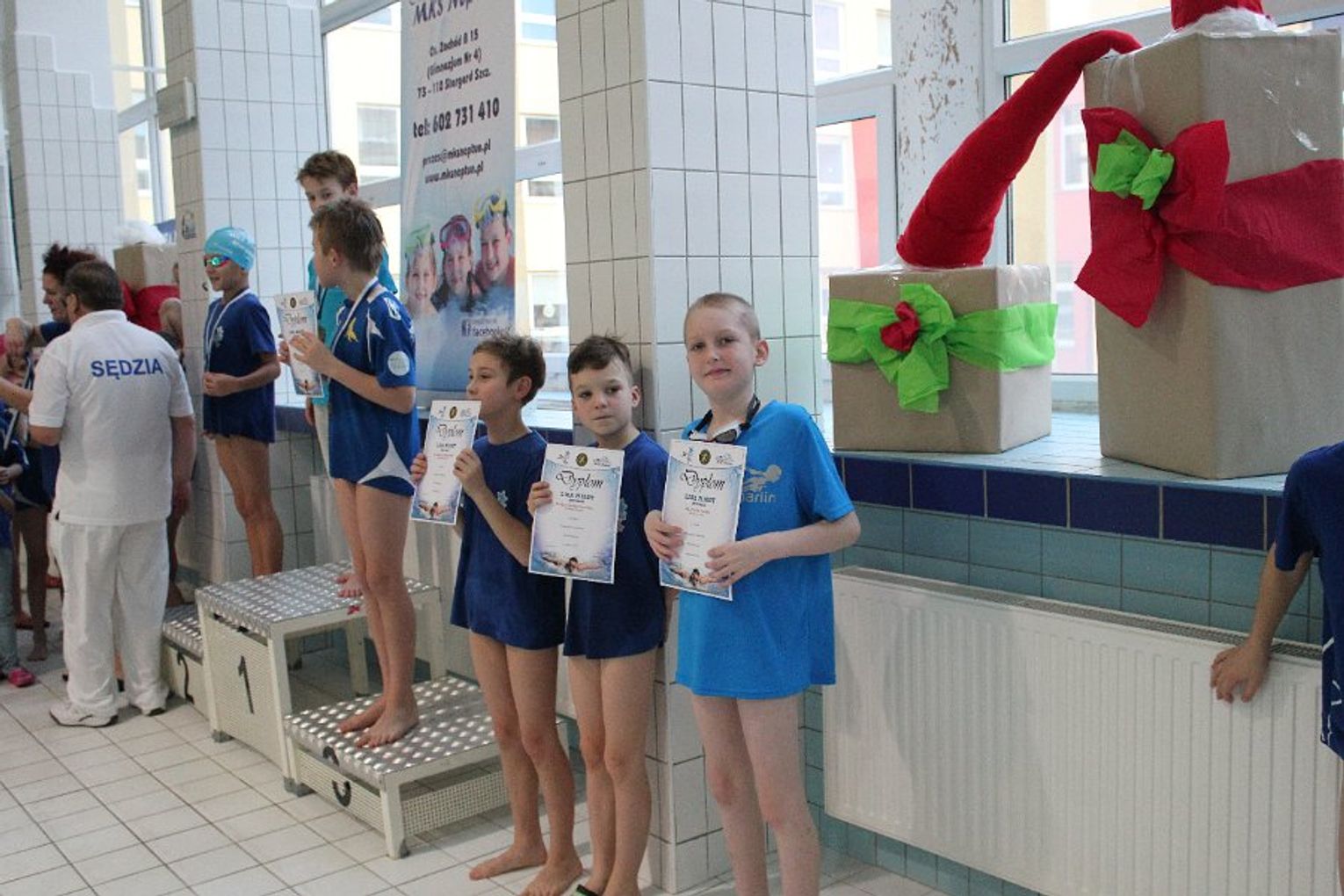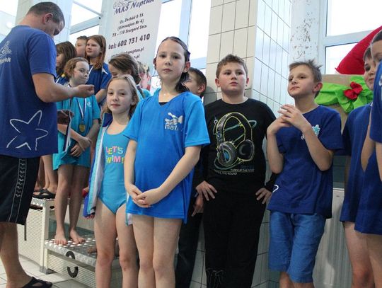Bardzo dobrze popłynęły nasze sztafety, na dystansie 4x50m stylem dowolnym. W kategorii 10 lat sztafeta w składzie: Michał Mężyński, Zuzanna Zawada, Hanna Zielińska i Nel Brzeskot wywalczyła 4 miejsce. Również, na 4 miejscu, ale w kategorii 9 lat i młodsi dopłynęła sztafeta w składzie: Jacek Wodzyński, Celestyna Szulc, Aleksandra Szewczuk i Mateusz Rozmiarek. Zaś druga nasza sztafeta, w tej kategorii, w składzie: Jagoda Kujawa, Adrianna Gniłka, Weronika Małolepsza i Jakub Jastrowicz dopłynęła na 6 miejscu.
