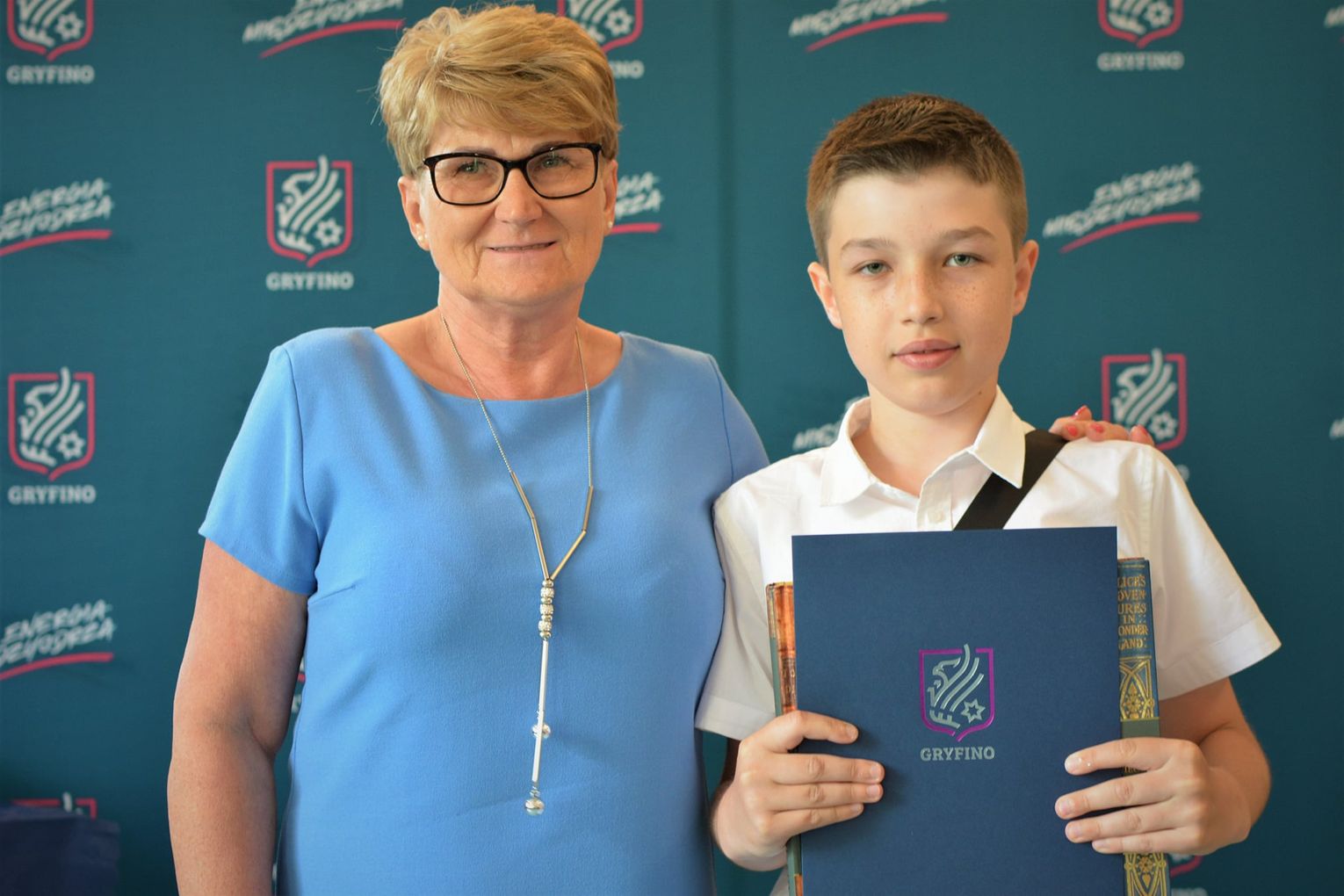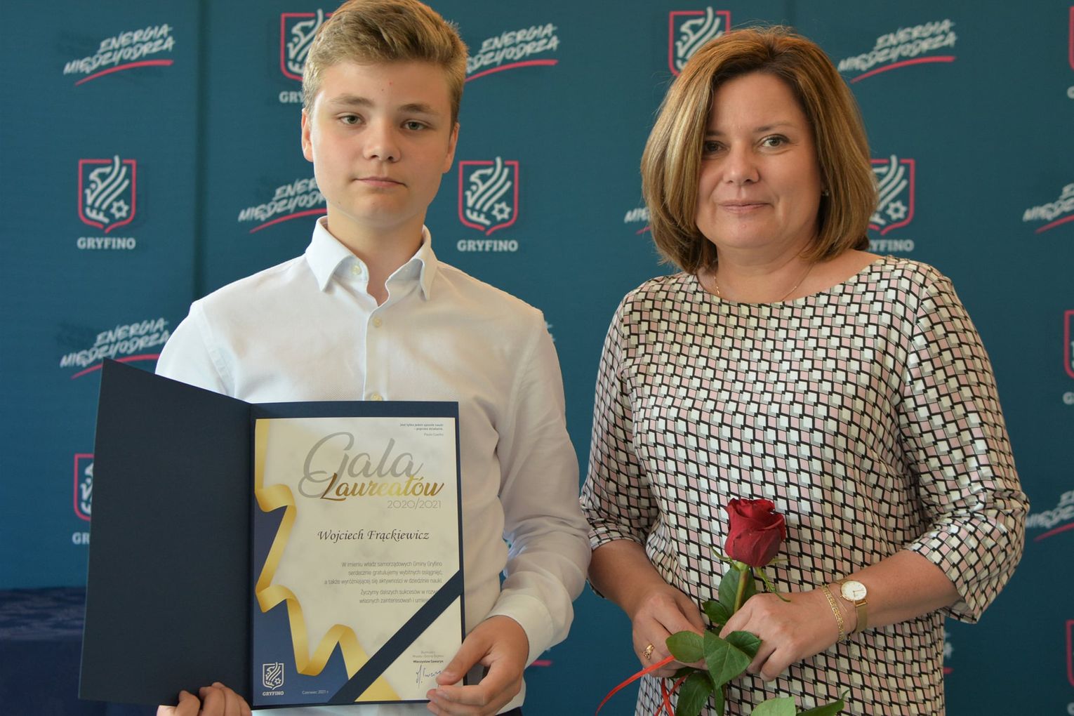 Podczas spotkania w Urzędzie Miasta i Gminy w Gryfinie wręczono nagrody książkowe, dyplomy i gratulacje następującym przedstawicielom poszczególnych szkół i Gryfińskiego Domu Kultury: