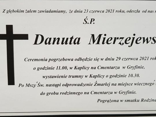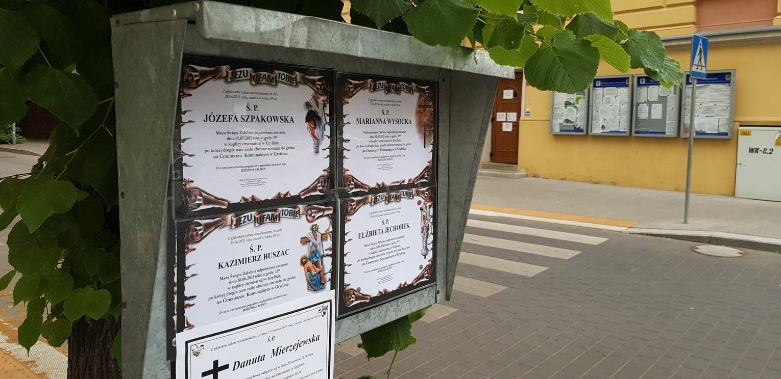 Na tablicy (zdjęcia w fotogalerii) zamieszczono dziś informacje o pogrzebach następujących mieszkańców, są to: