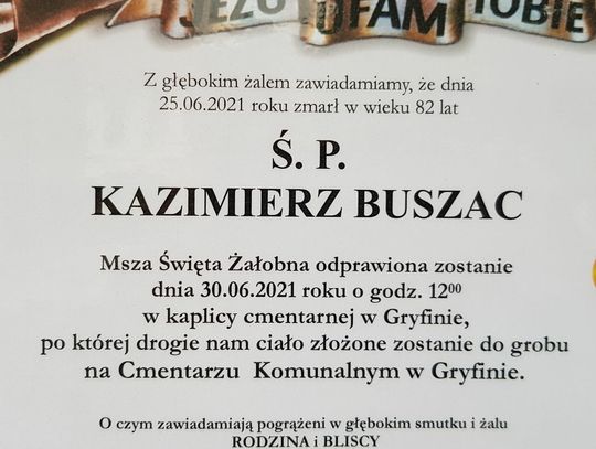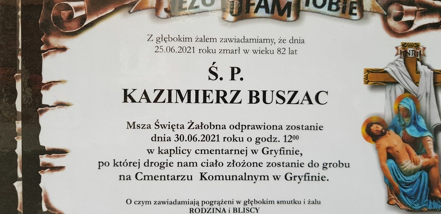 Kazimierz Buszac - lat 82 (pogrzeb 30 czerwca, godz. 12)