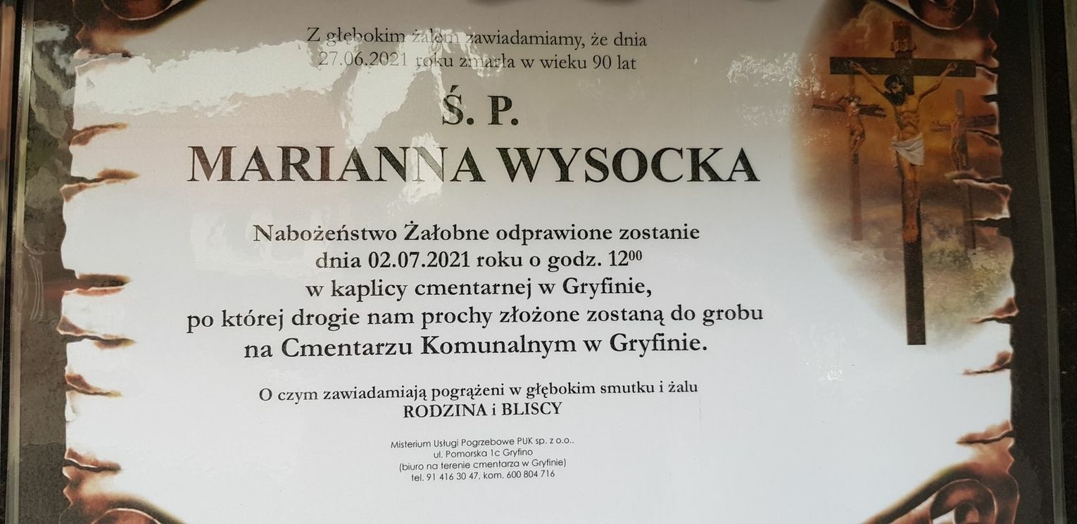 Marianna Wysocka la t 90 (pogrzeb 2 lipca godz. 12)