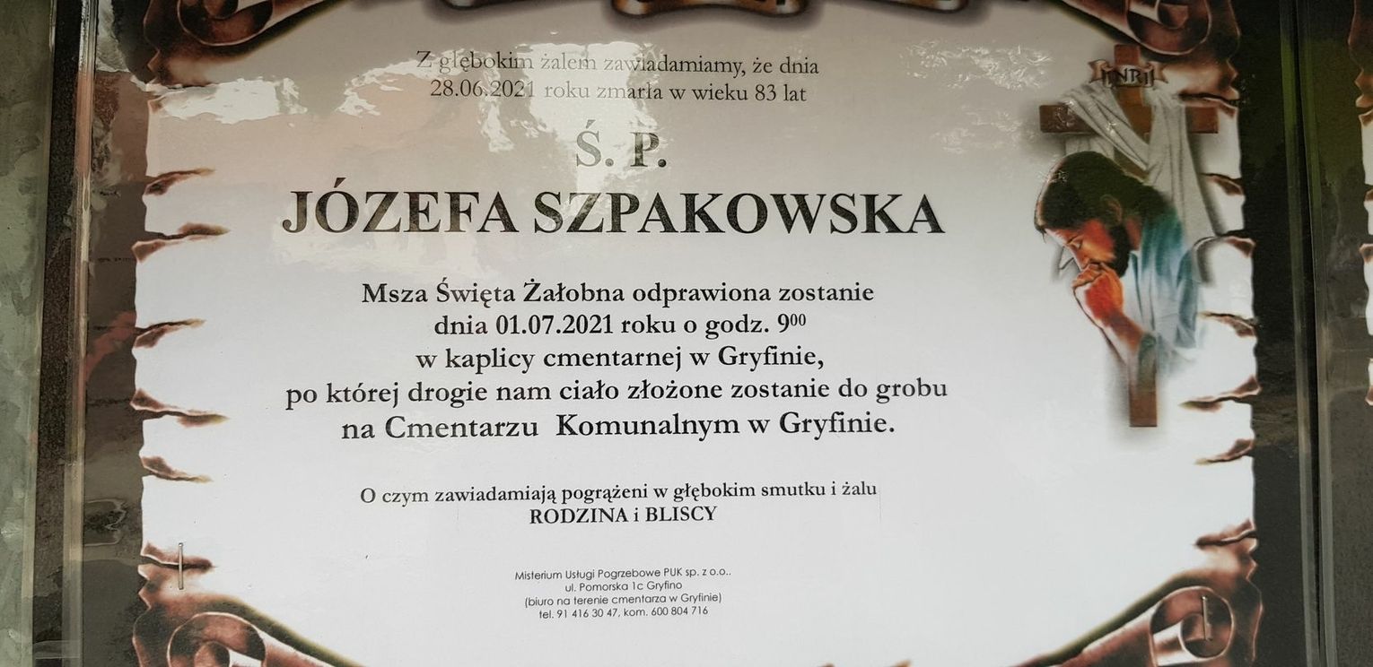 Józefa Szpakowska - lat 83 (pogrzeb 1 lipca godz. 9)