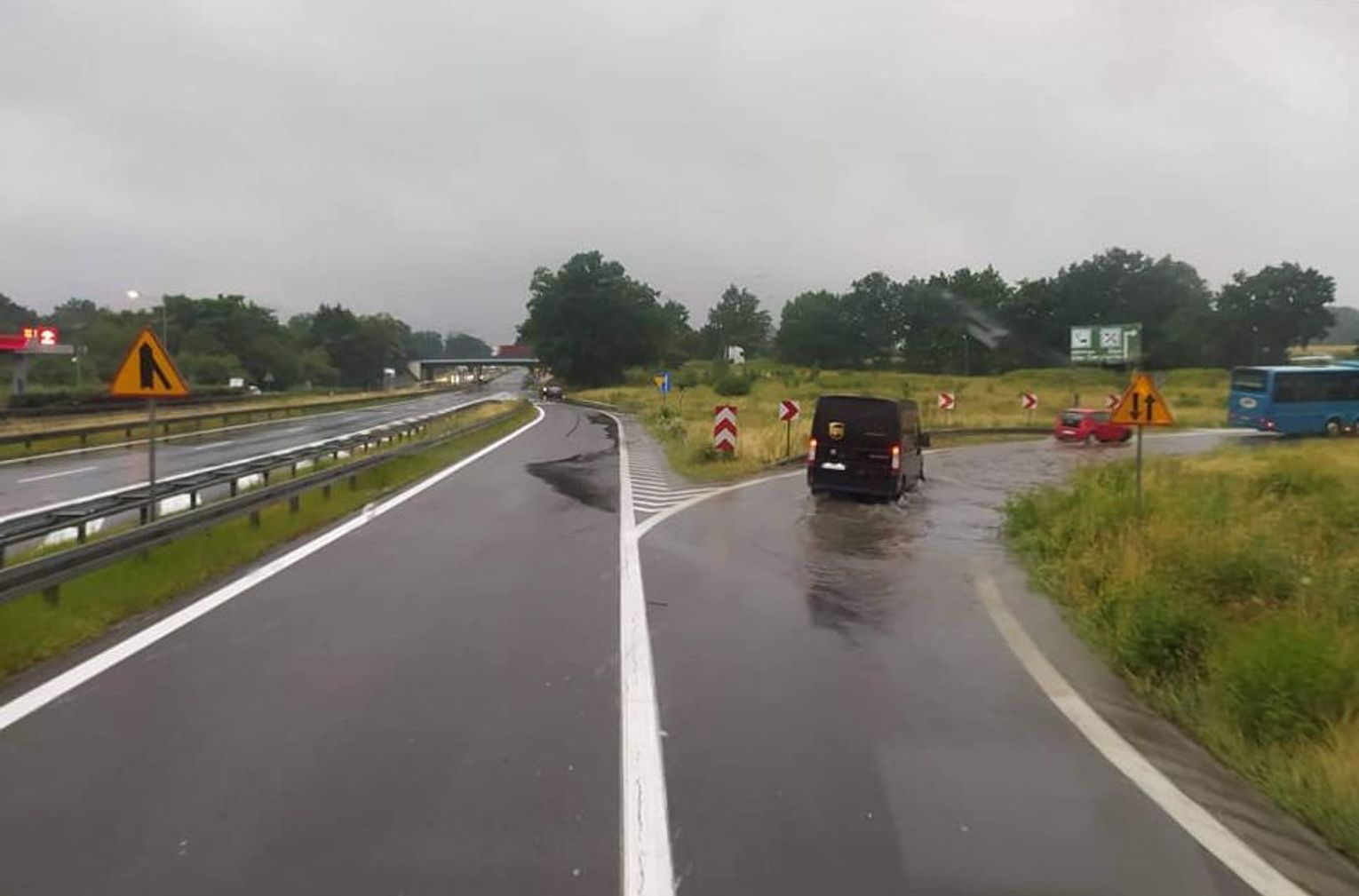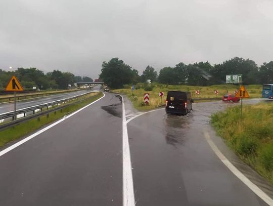 Na dodatek na węźle Szczecin Kijewo na skutek ulewy osunęła się skarpa.