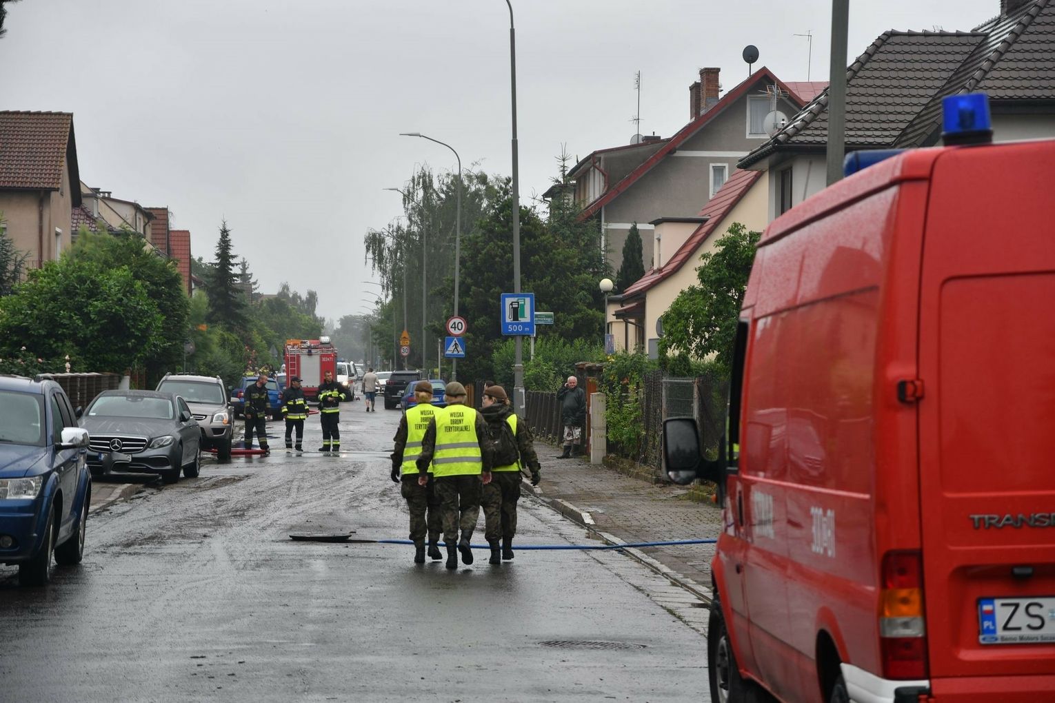 Pompa przywieziona przez strażaków z Koszalina ma pomóc w udrożnieniu trasy.