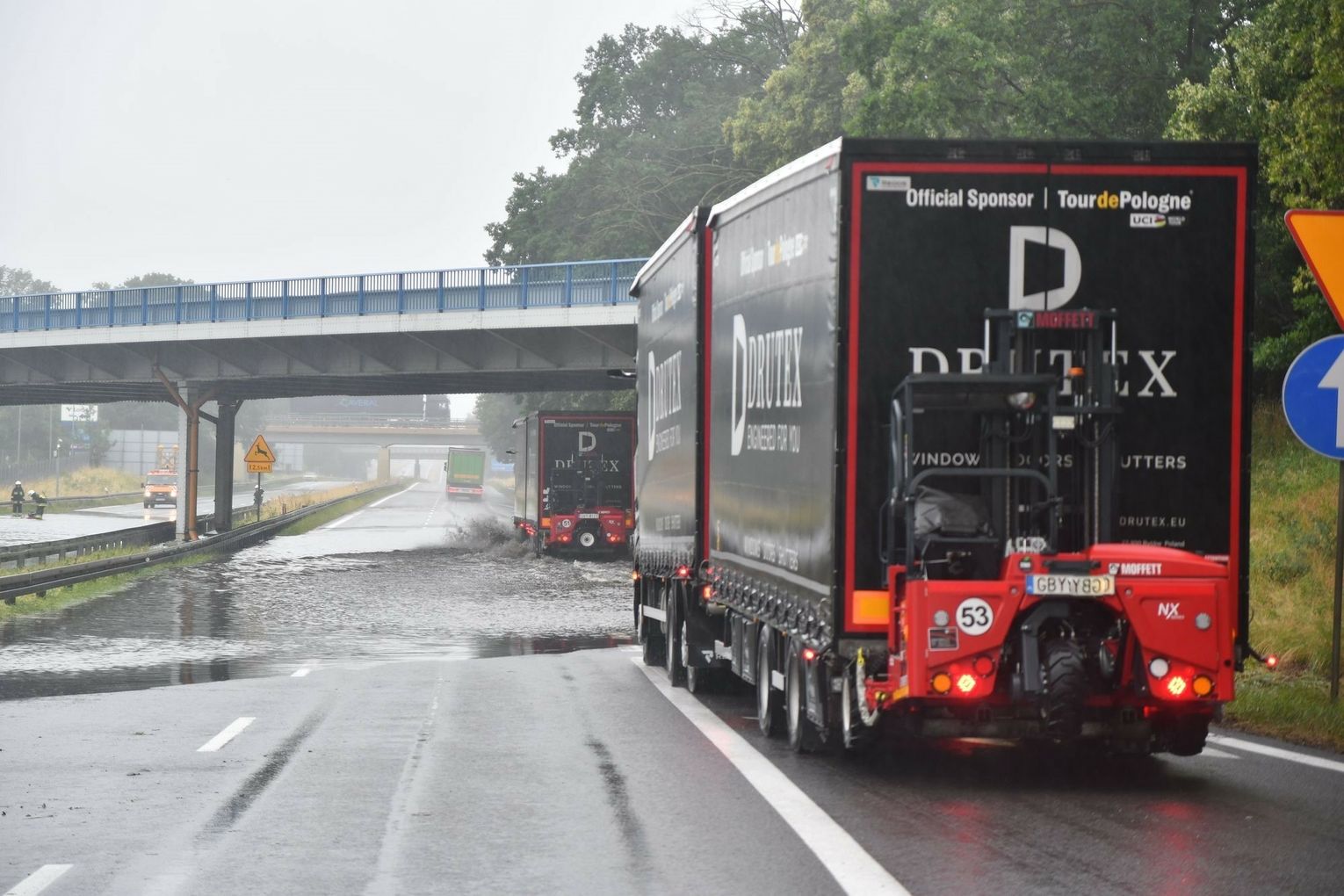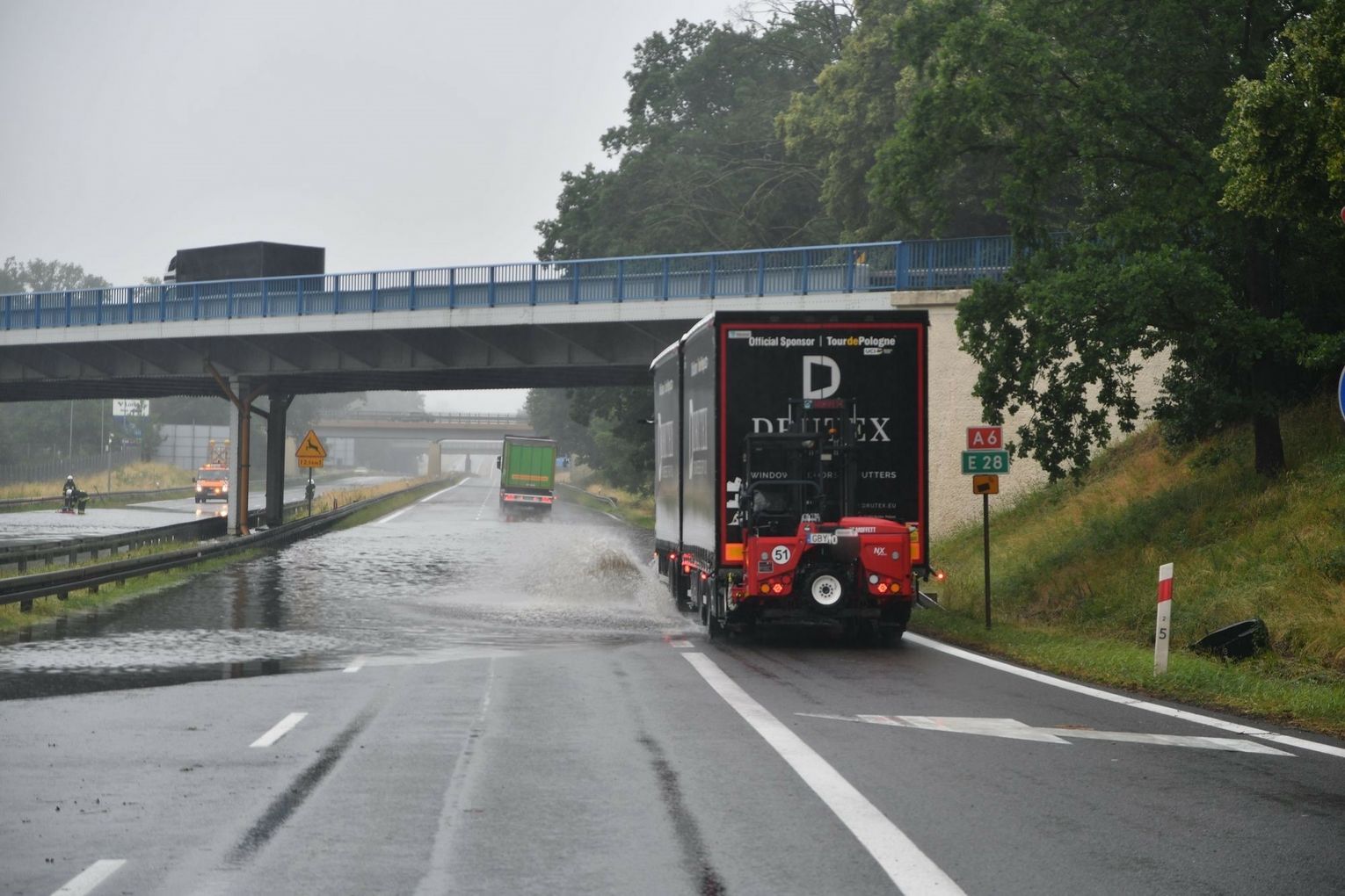 - Samochody ciężarowe przejeżdżają pojedynczo przez zalany odcinek jezdni, a osobowe są zawracane do Niemiec i w dalszym ciągu kierowane na DK13 przejście graniczne Rosówek. GDDKiA czasowo rozkręciła bariery oddzielające jezdnie. Straż Pożarna zapewni dodatkowe pompy, aby przyspieszyć usuwanie wody. Policja niemiecka wstrzymała ruch w kierunku przejścia granicznego w Kołbaskowie, na węźle w miejscowości Penkun i kieruje na objazdy - informuje redakcję igryfino rzecznik prasowy wojewody zachodniopomorskiego Michał Ruczyński.