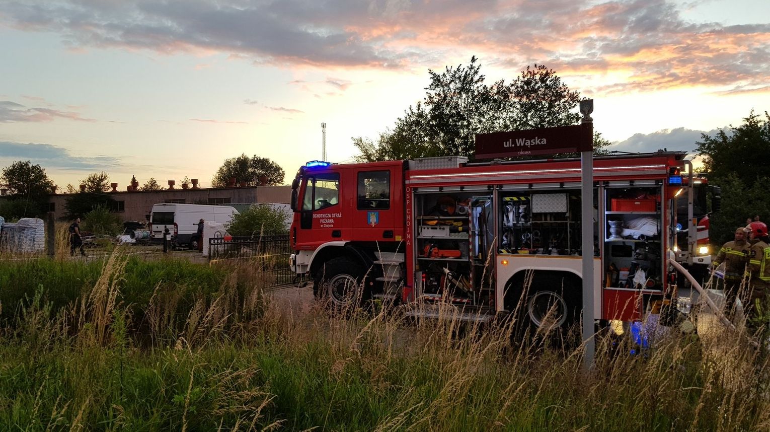 Pożar wybuchł przed godz. 18 w poniedziałek 5 lipca 2021 r. na Lotnisku w Chojnie przy ul. Transportowej.