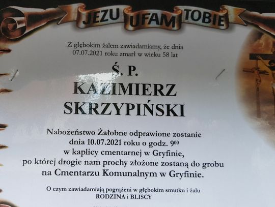 Kazimierz Skrzypiński (pogrzeb sobota godz. 9) - lat 58