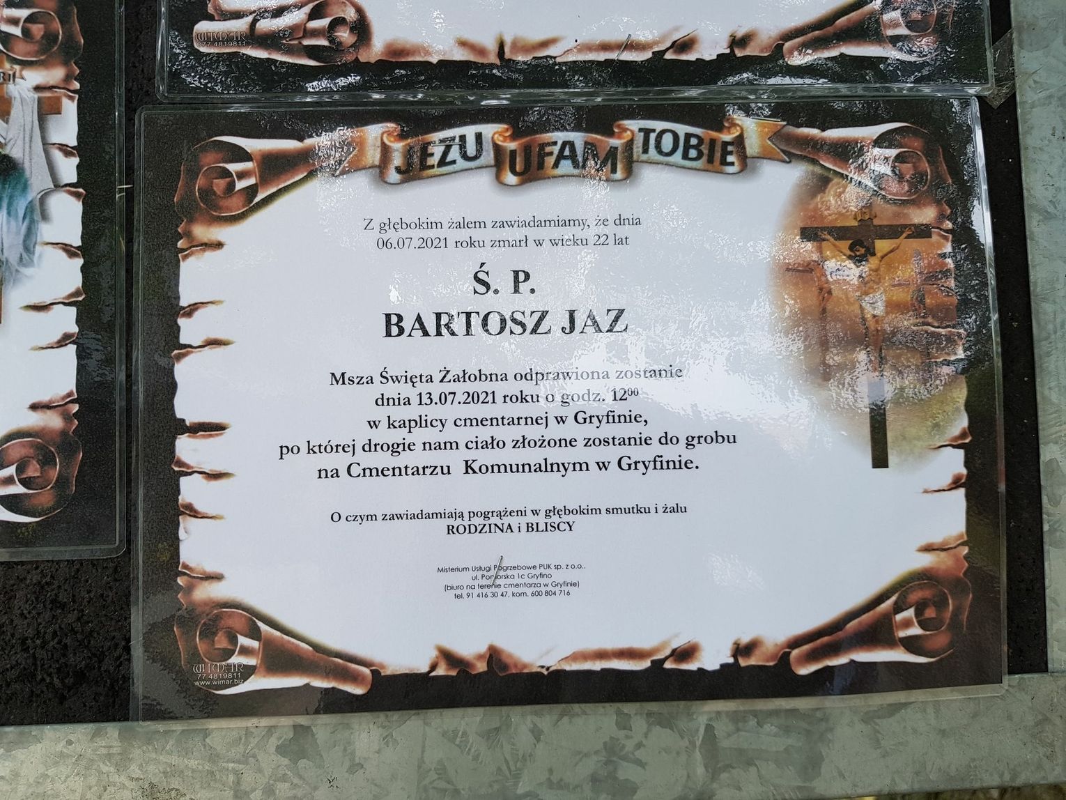 Bartosz Jaz (pogrzeb 13 lipca o godz. 12) - lat 22