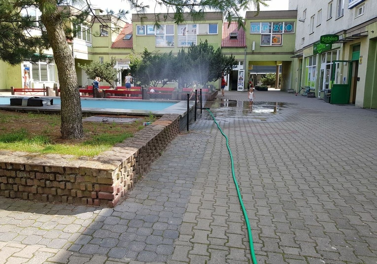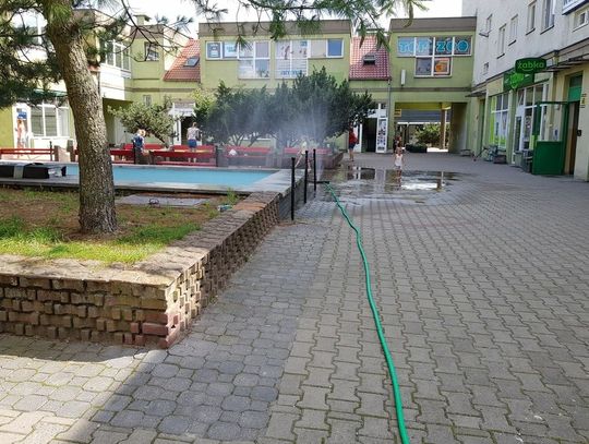 Już z daleka słyszeliśmy krzyki dzieci. Sądziliśmy, że na gryfińskim Kwadracie uruchomiono fontannę. To jednak nie było to, ale woda tryskała i gromadziła starszych i młodszych.