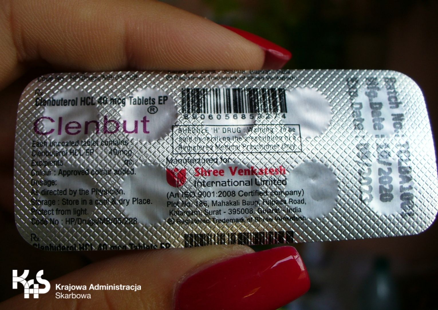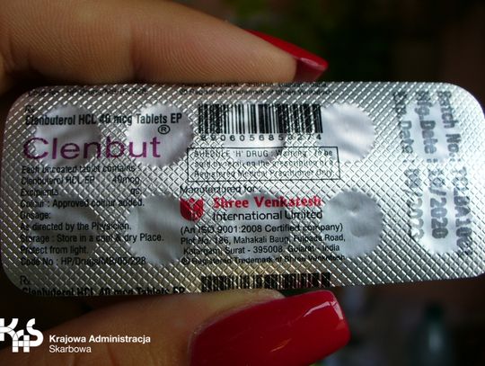 Prześwietlenie przesyłki potwierdziło podejrzenia funkcjonariuszy. Podczas prześwietlenia paczki można było zobaczyć blistry tabletek i ampułki farmaceutyków. W paczce znajdowało się 100 szt. tabletek CLENBUTU oraz