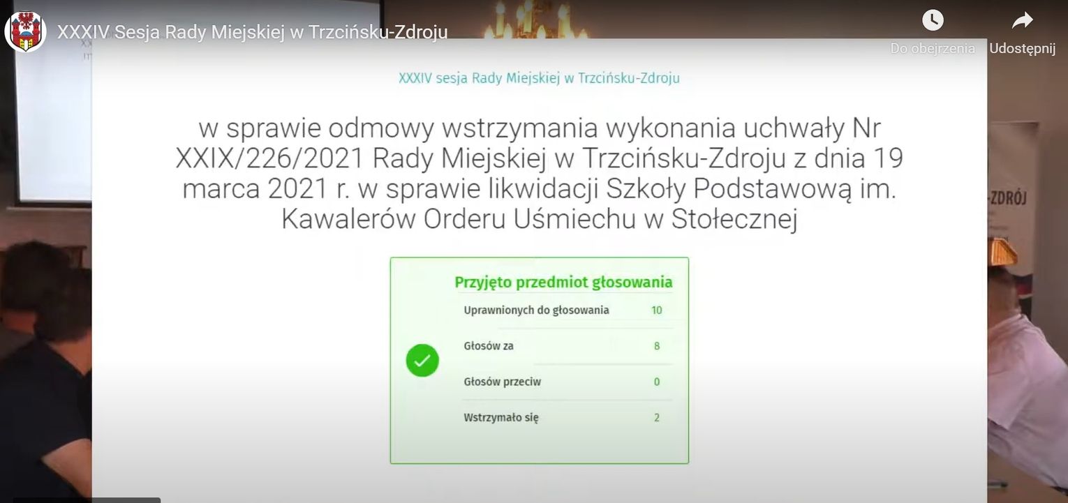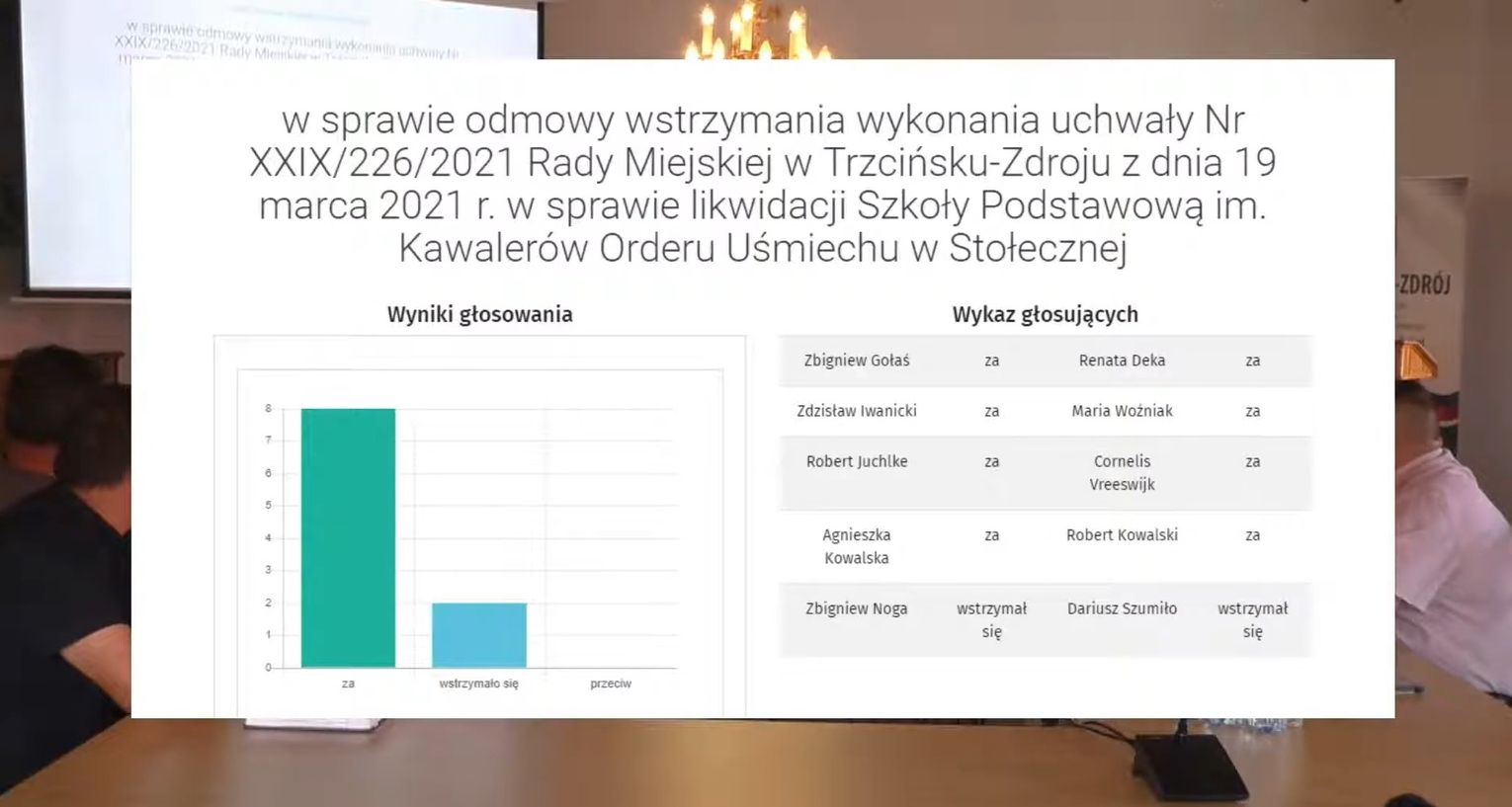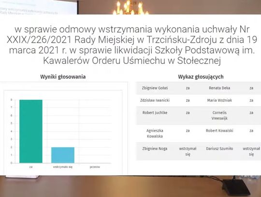 Za odmową wstrzymania wykonania uchwały likwidującej podstawówkę w Stołecznej głosowało 8 radnych: