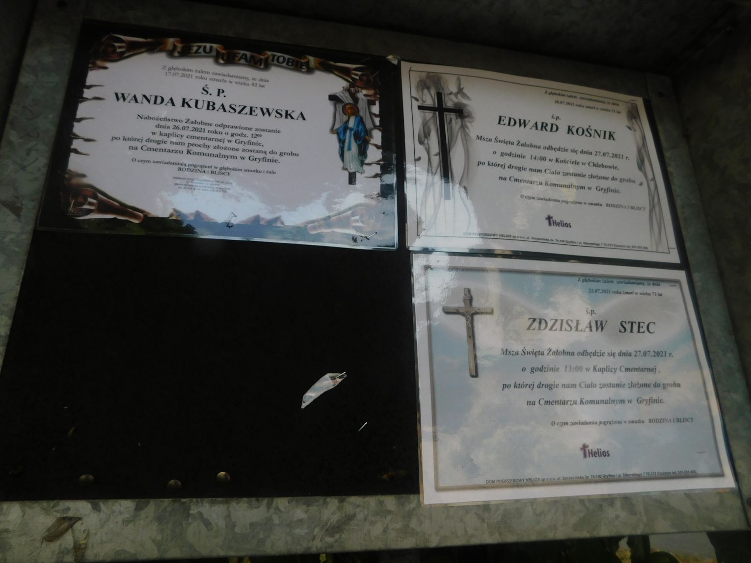 Na tablicach informacyjnych widzimy dziś (25 lipca 2021 r.) klepsydry z następującymi nazwiskami: