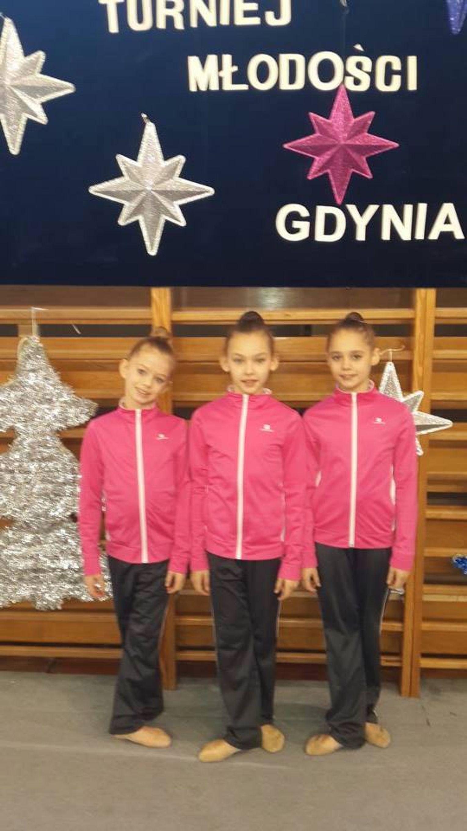Natomiast Kamila Kosudzińska i Karolina Serafin, startując w Gdyni w układzie ze skakanką oraz z nowym przyborem - piłką zaprezentowały się na macie znakomicie i z wielką odwagą wywalczyły następujące miejsca: Kamila m. 9 i Karolina m. 19., Julia w trzech układach zajęła m. 25.