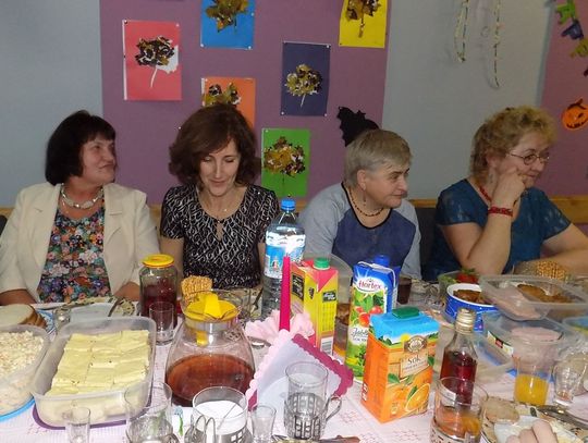 Tort i życzenia od burmistrza Mieczysława Sawaryna przekazała sekretarz Ewa Sznajder. Jest swojsko i rodzinnie.