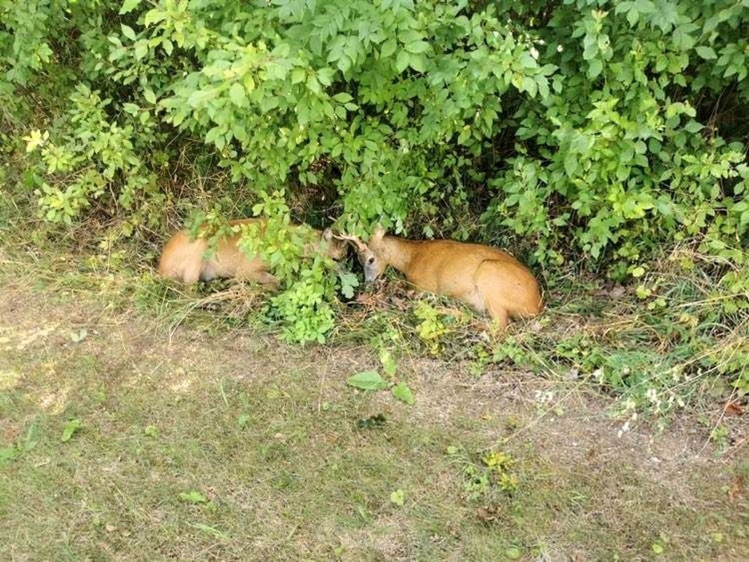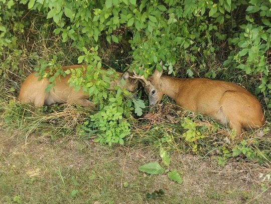 Do dyżurnego policji dotarło zgłoszenie od dwóch nastolatek. Dziewczyny zgłaszały, że wyszły na spacer i zauważyły pod drzewami przy ścieżce rowerowej dwie leżące sarny. Nie chciały podchodzić blisko do zwierząt, bo nie wiedziały jak te mogą się zachować, ale zauważyły, że są wyczerpane i ciężko oddychają, nie mają siły się ruszać, a ich parostki są zakleszczone.