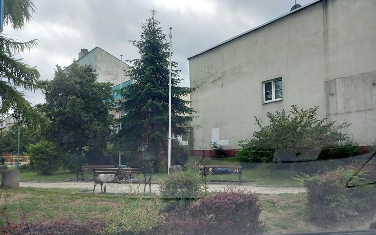 Dzisiaj rano 15 sierpnia 2021 r. nasz czytelnik, jadąc samochodem przez centrum Gryfina, natknął się na taki widok. Dwaj panowie w niedzielny poranek leżą sobie na ławkach na skwerku niedaleko fontanny "pod zegarem".