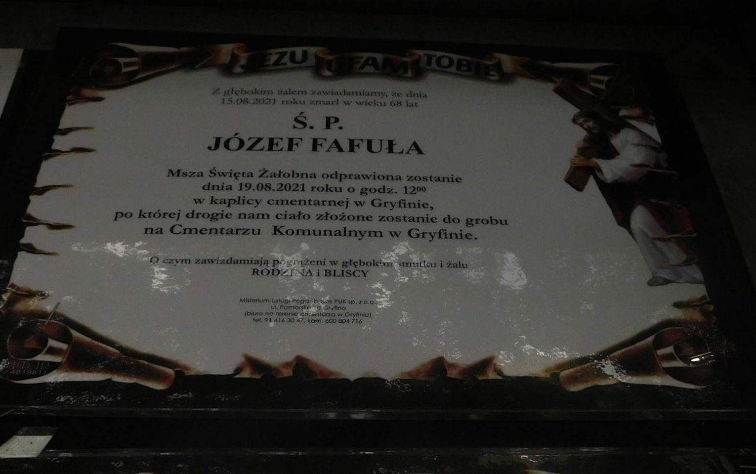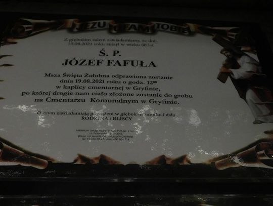 Józef Fafuła - lat 68 (pogrzeb 19 sierpnia, msza w kaplicy o godz. 12)