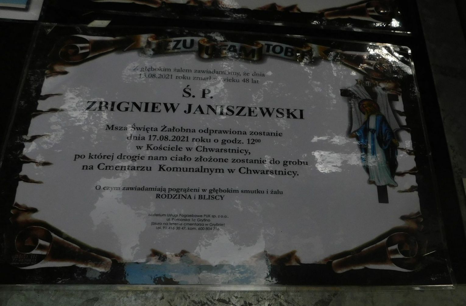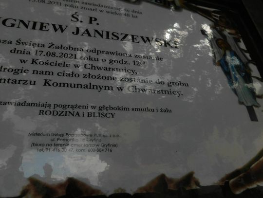 Zbigniew Janiszewski - lat 48 (pogrzeb odbył się dziś w Chwarstnicy)