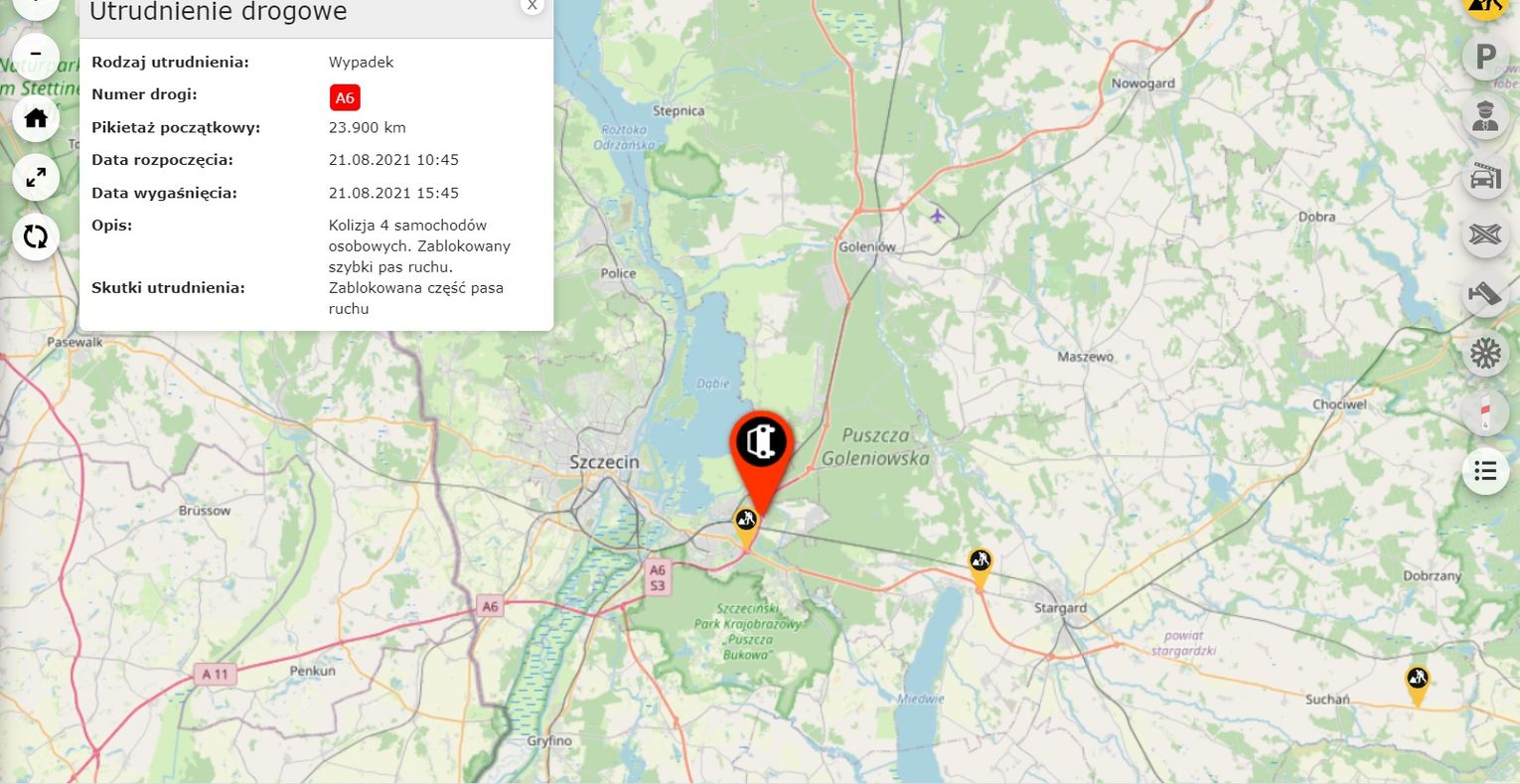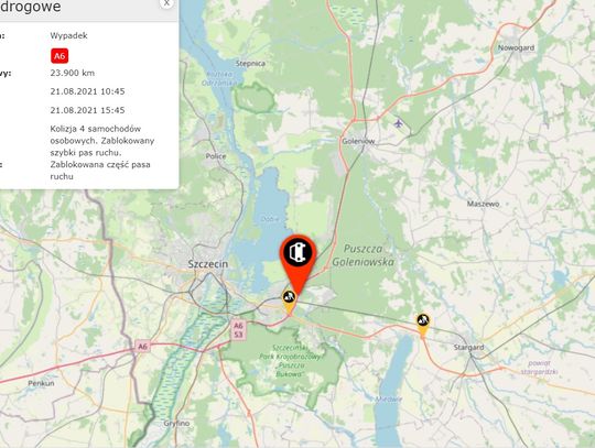 Dzisiaj 21 sierpnia 2021 r. na drodze A6 w kierunku Kołbaskowa między węzłami Dąbie - Kijewo zderzyły się cztery samochody osobowe. Zablokowany jest szybki pas ruchu.