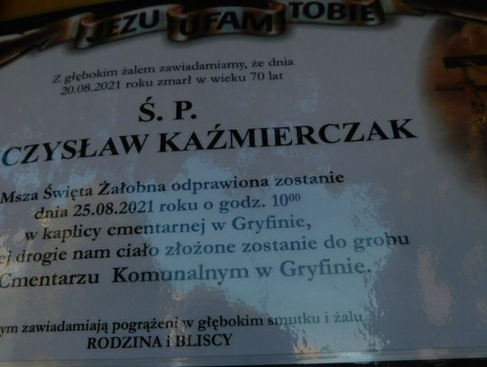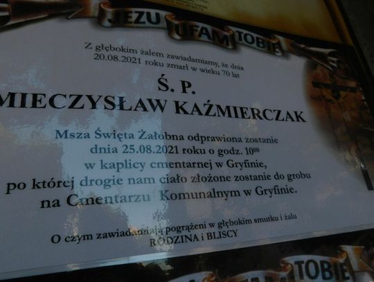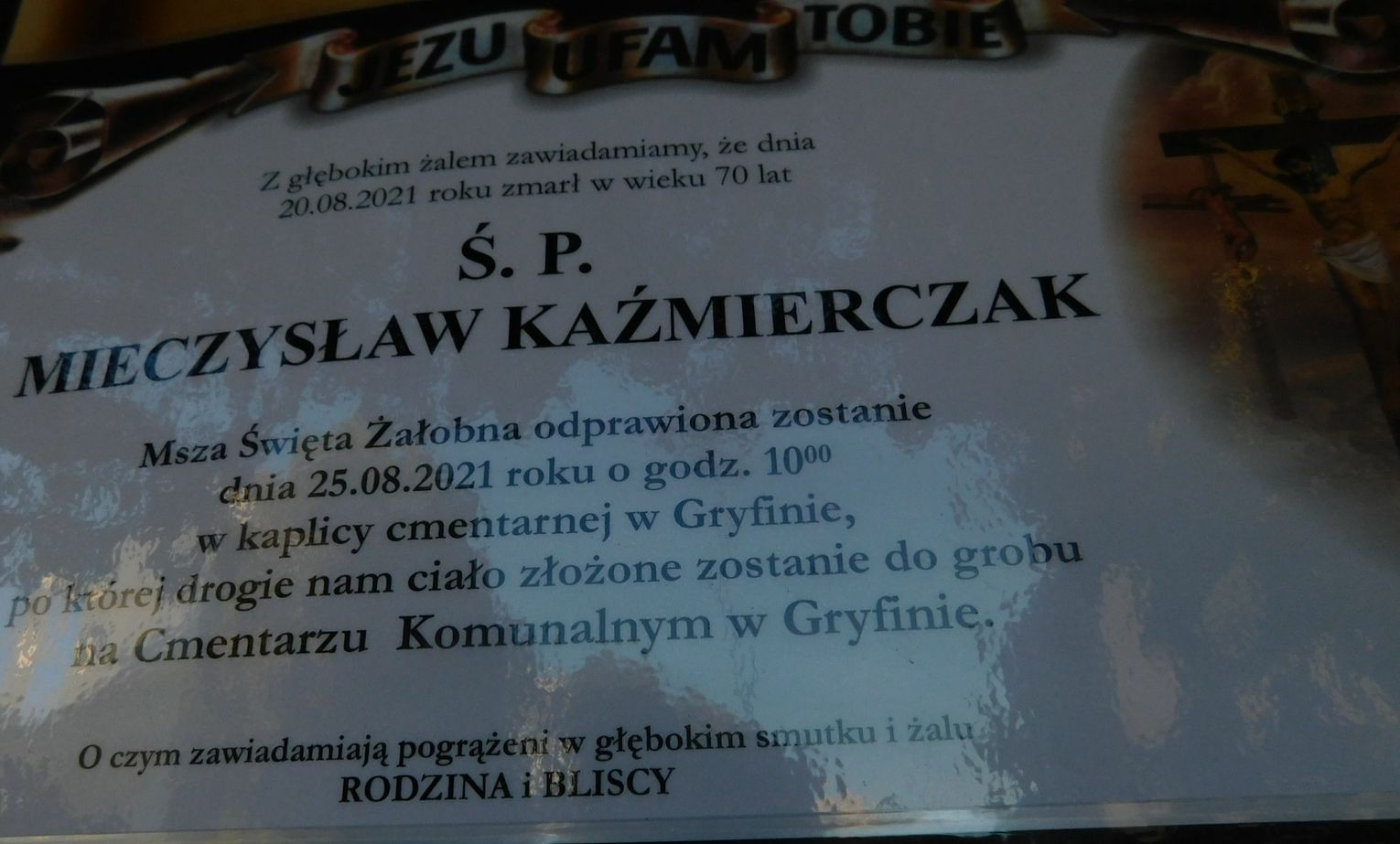 Mieczysław Kaźmierczak - lat 70 (pogrzeb 25 sierpnia, msza w kaplicy o godz. 10)