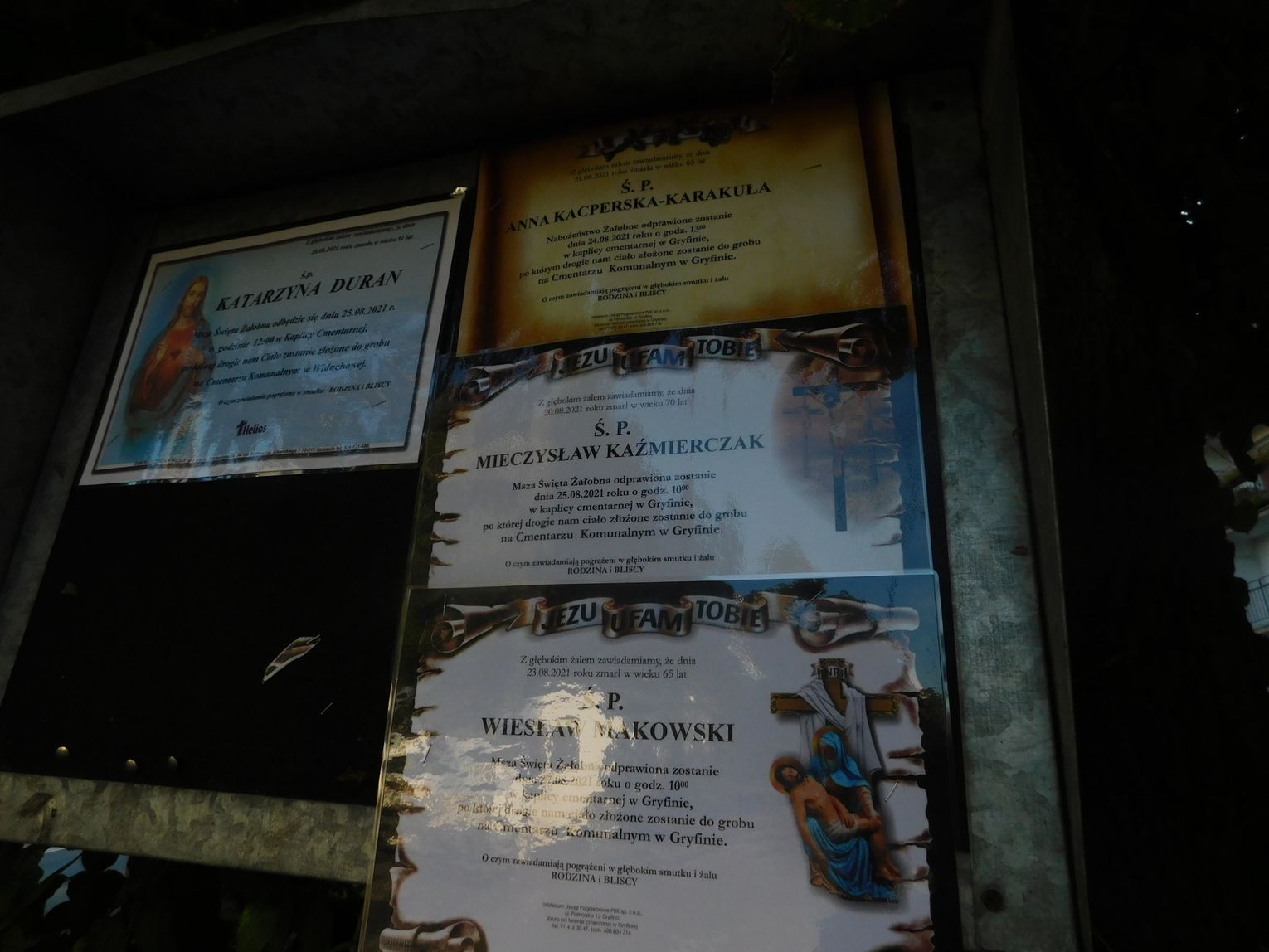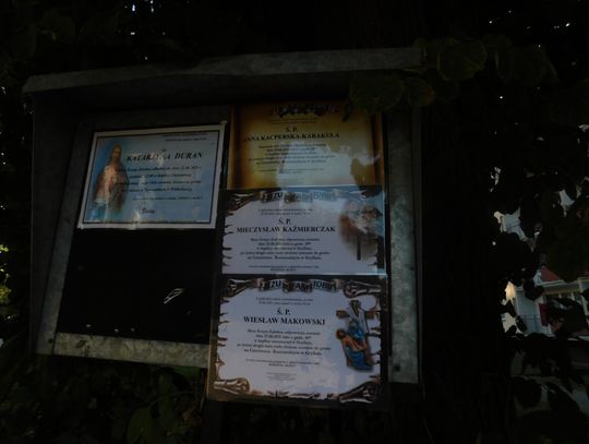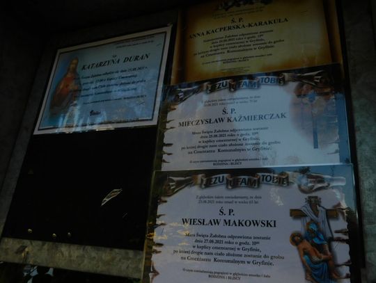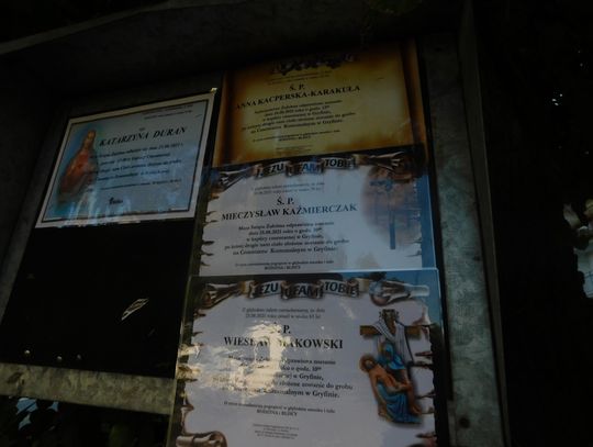 Na tablicach informacyjnych widzimy dziś (24 sierpnia 2021 r.) klepsydry z następującymi nazwiskami: