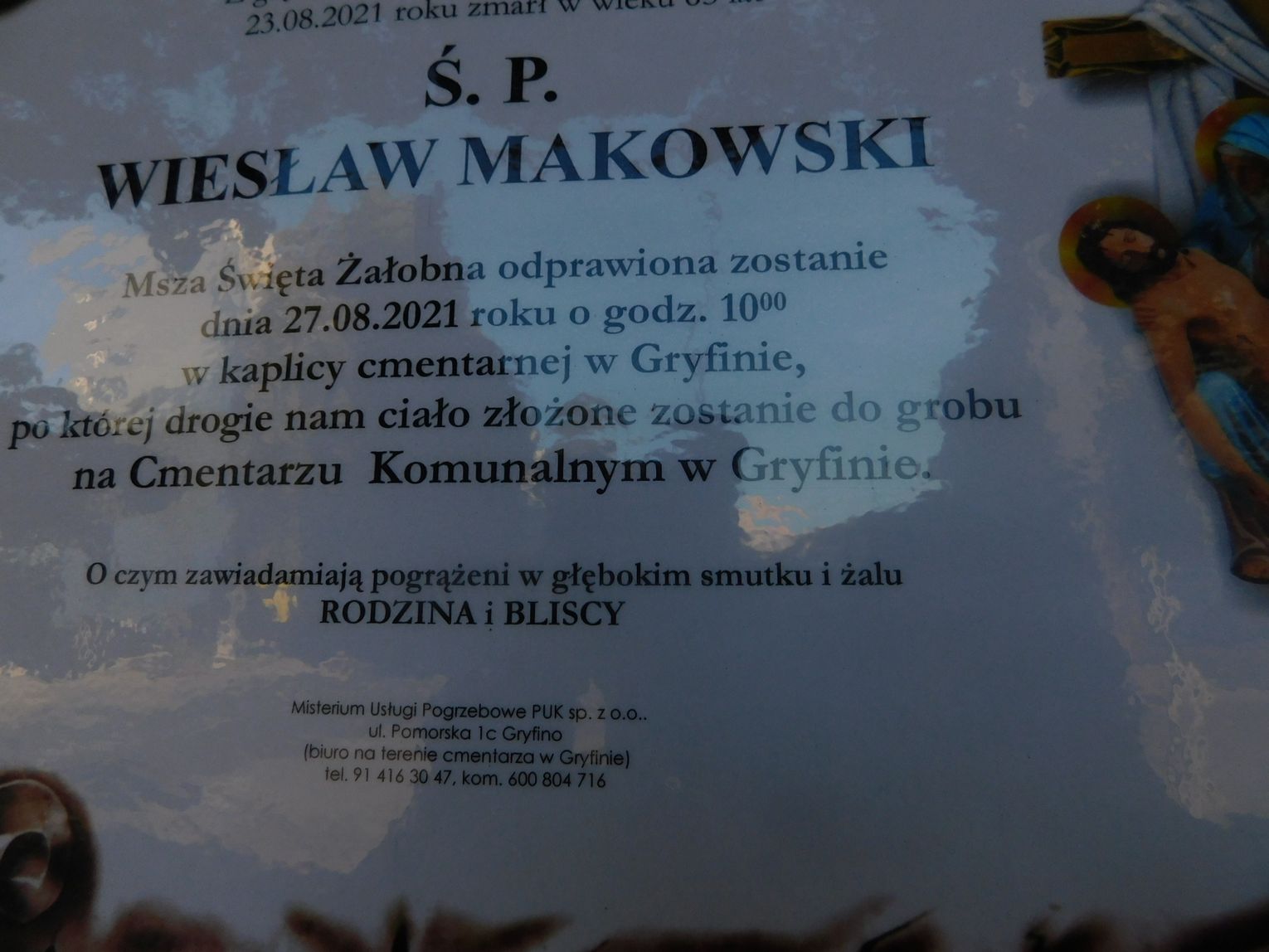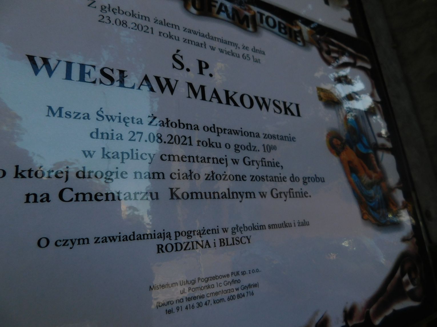 Wiesław Makowski - lat 65 (pogrzeb 27 sierpnia, msza w kaplicy o godz. 10)