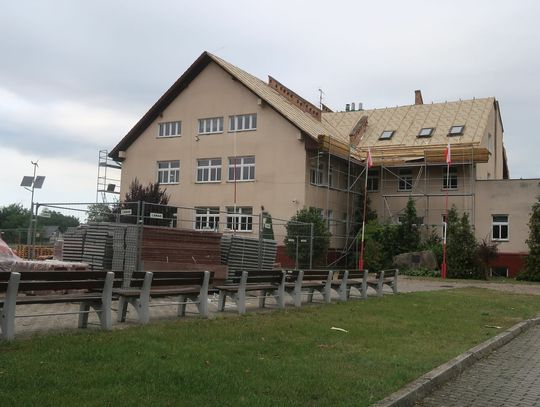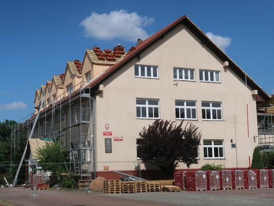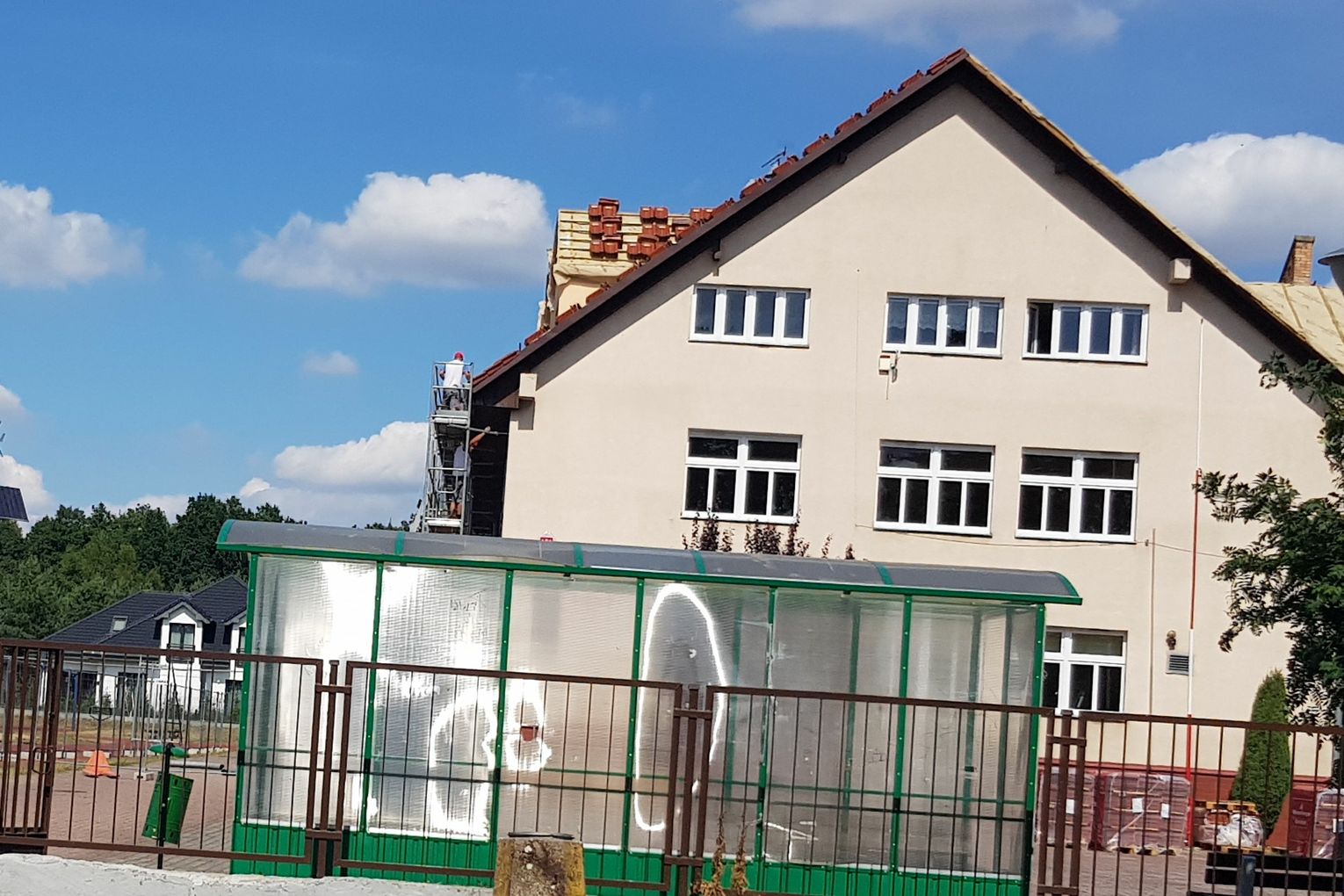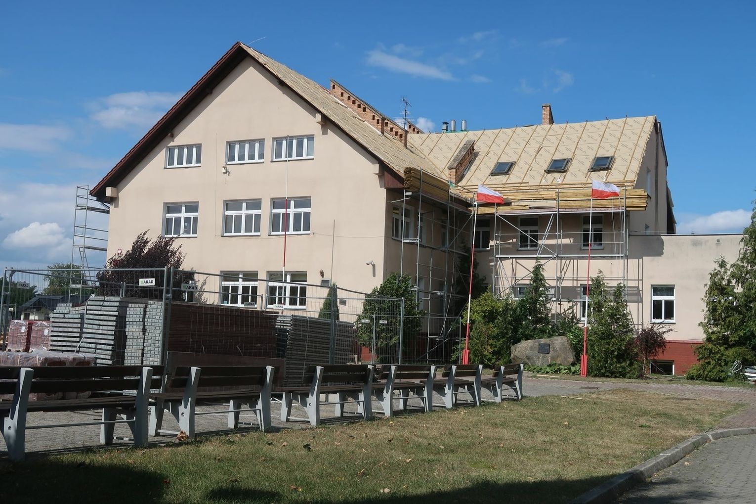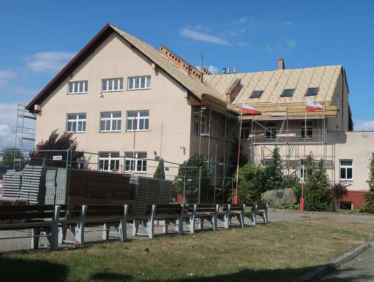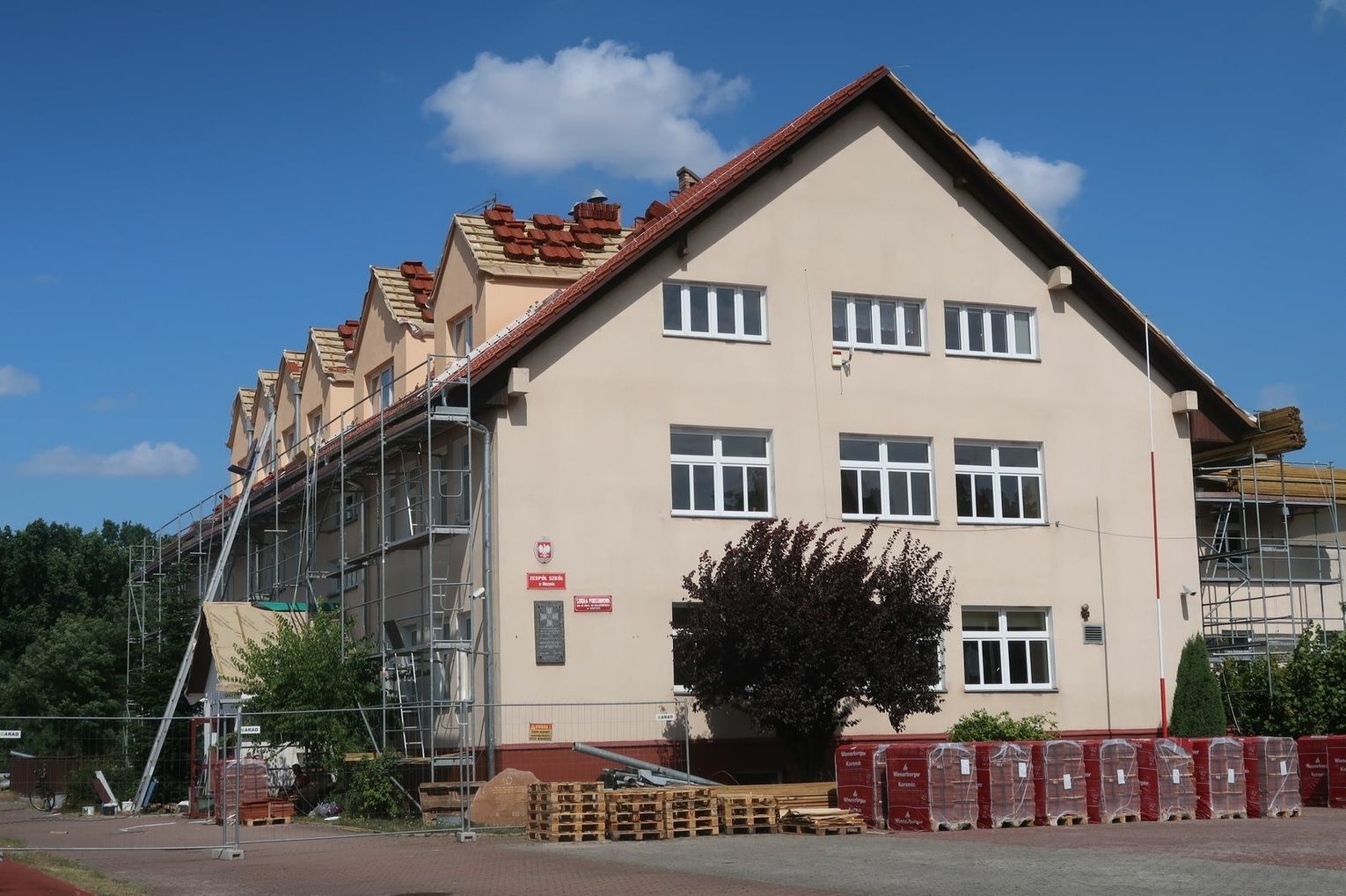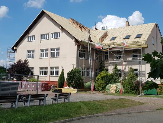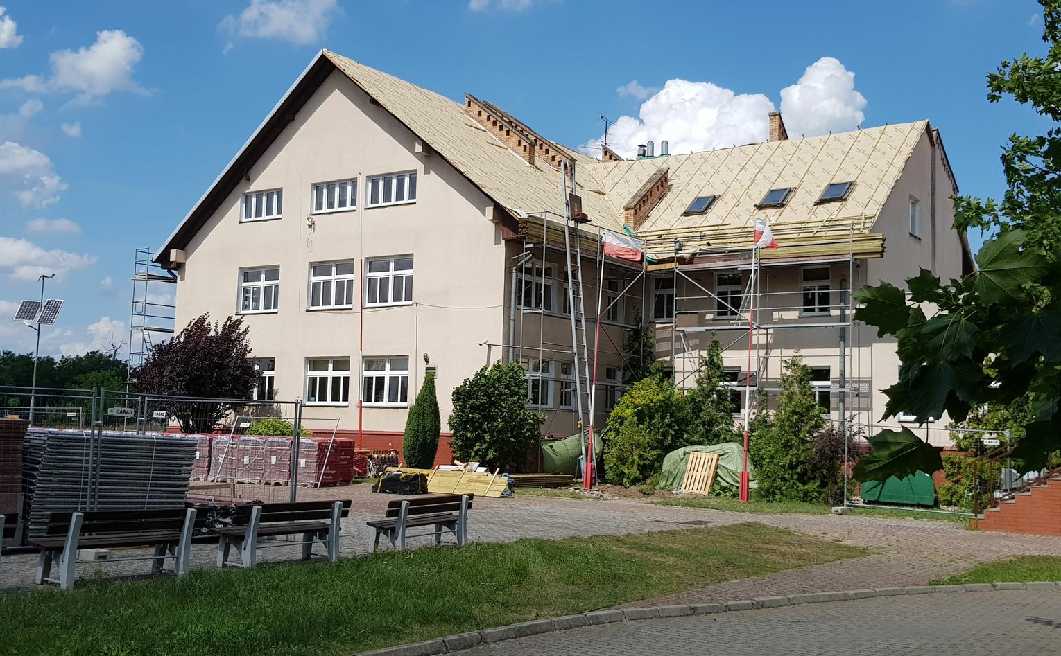 Dach na budynku Szkoły Podstawowej w Moryniu przekłada KAS-BUD Marek Kasiewicz. Inwestycja kosztuje 374 tys. zł.