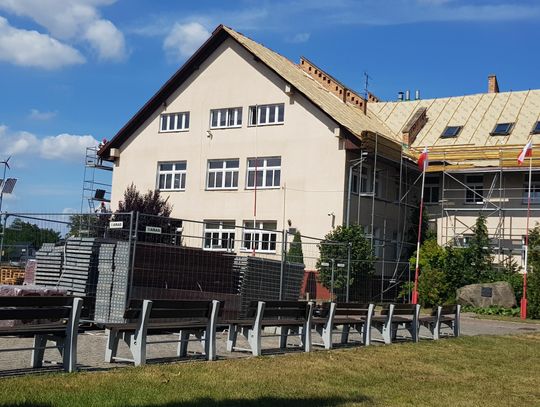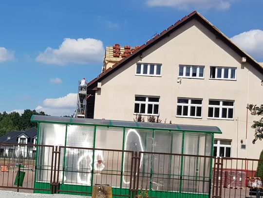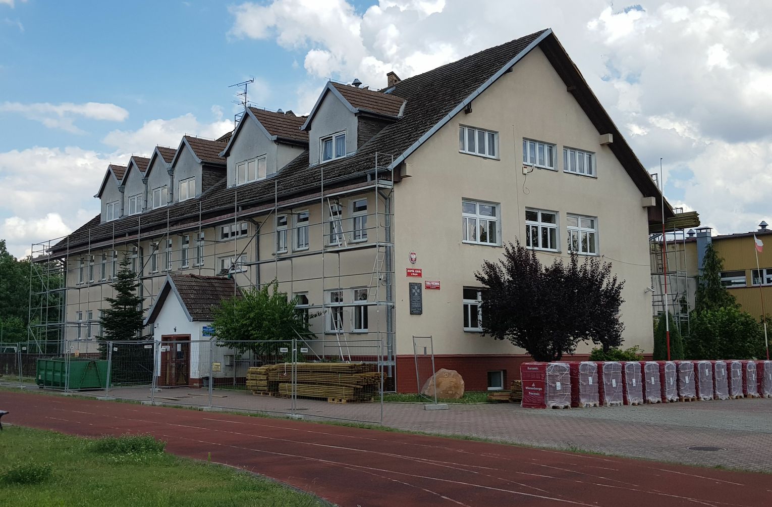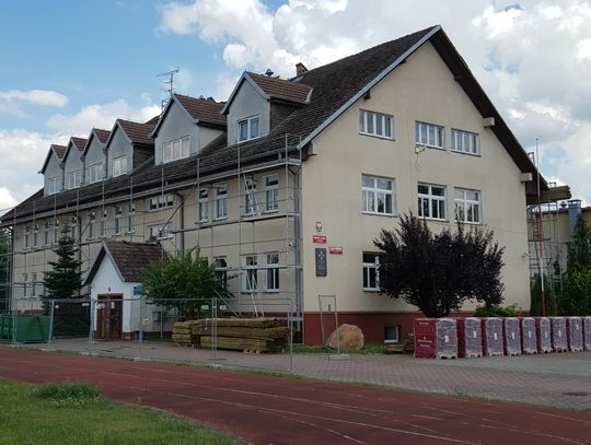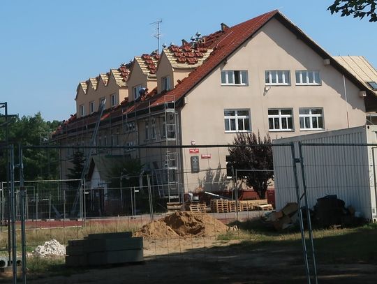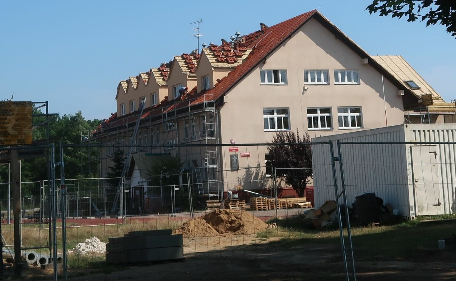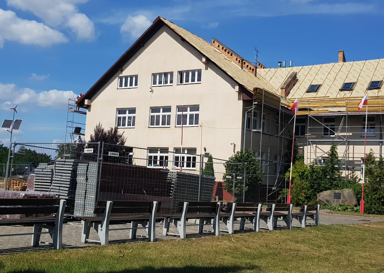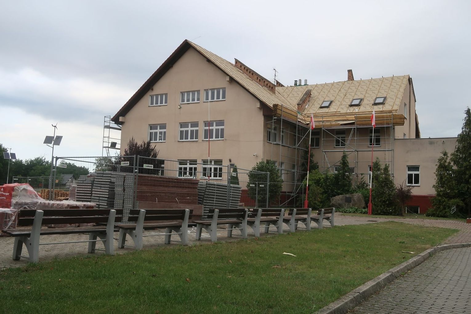 Dach na budynku Szkoły Podstawowej w Moryniu przekłada KAS-BUD Marek Kasiewicz. Inwestycja kosztuje 374 tys. zł.