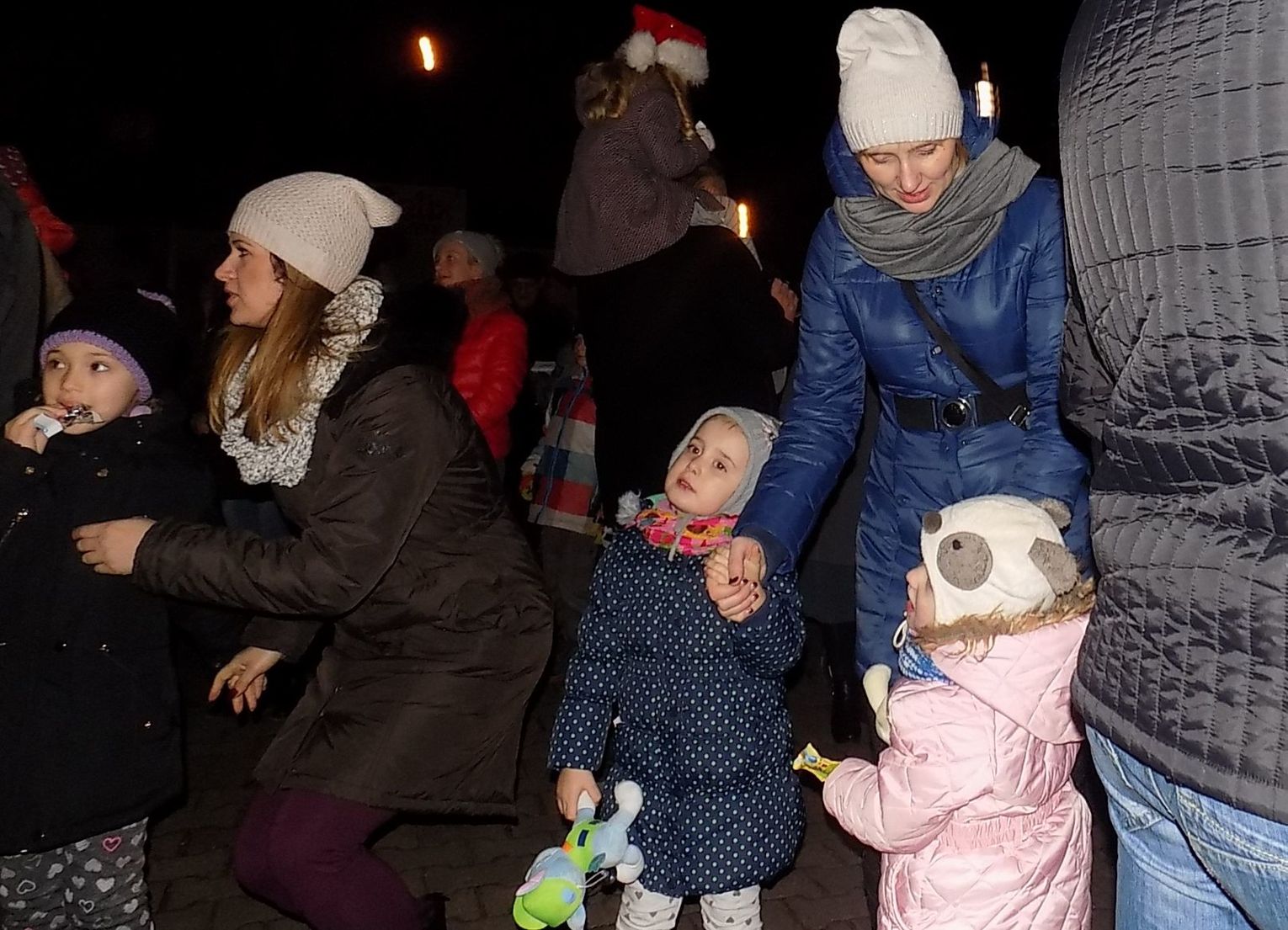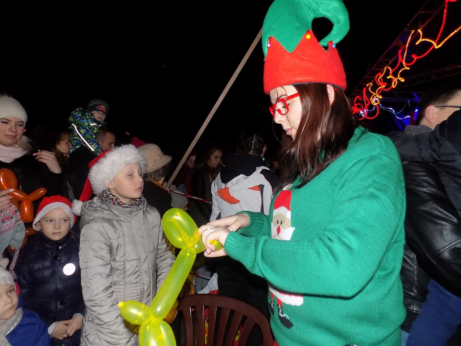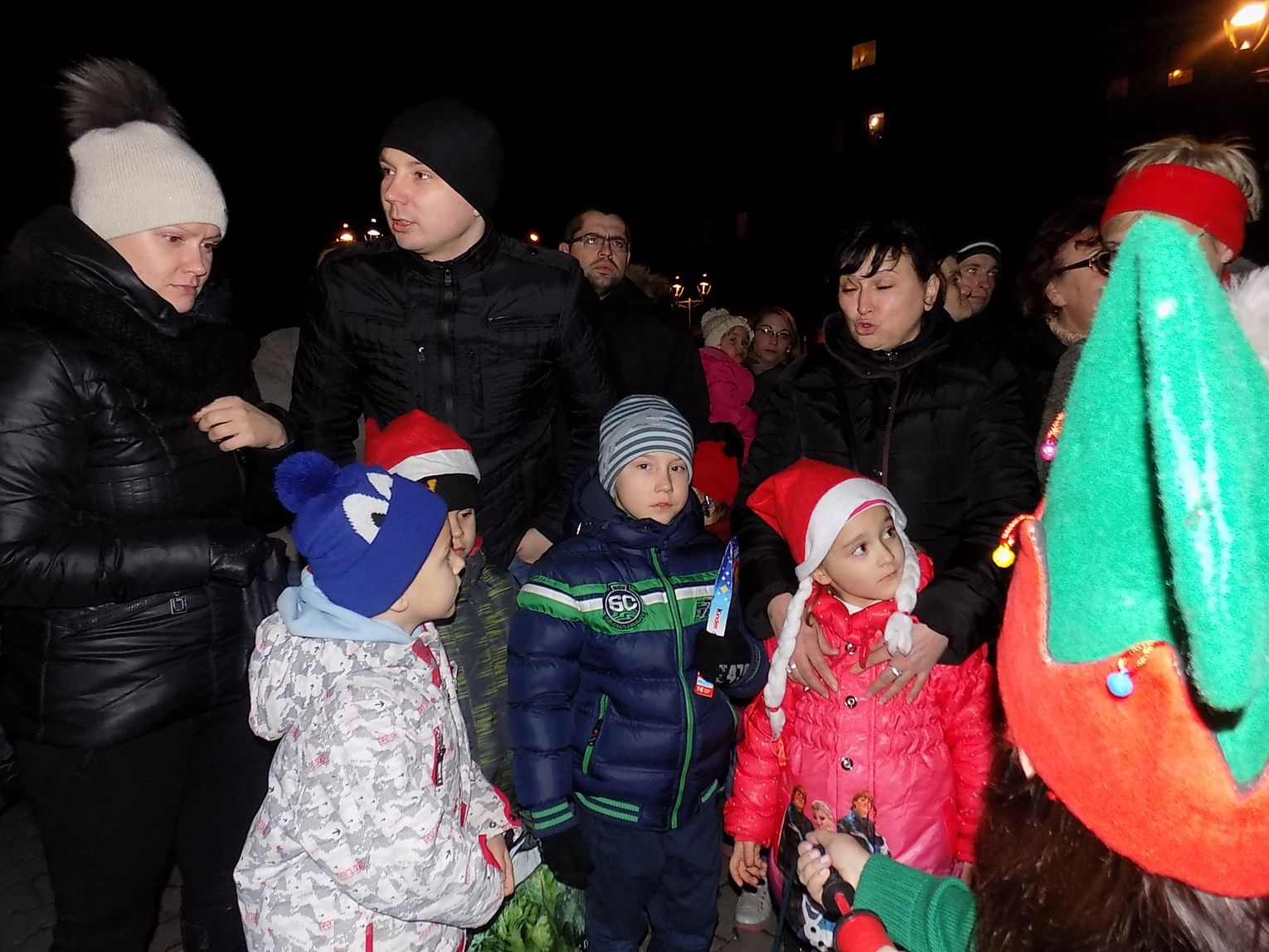 Wszystkim dopisywały znakomite humory. Zorganizowano konkursy, zabawy, organizatorzy zapewnili także nagrody. Po scenie i po placu wśród dzieci krążył mikołaj ze swoimi śnieżynkami i bałwankiem Olafem. Rozdawali cukierki i zapraszali do zabawy. Co raz ktoś się gubił, kogoś szukano, ale wszystko dobrze się kończyło.