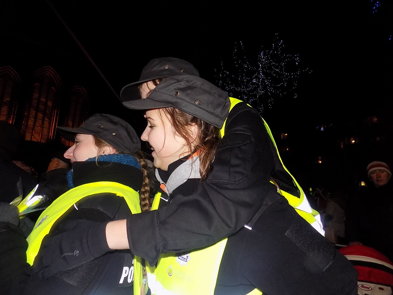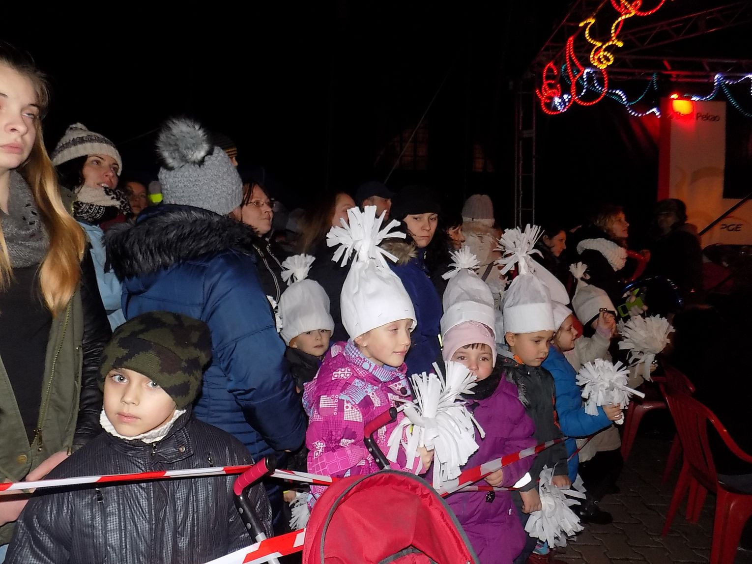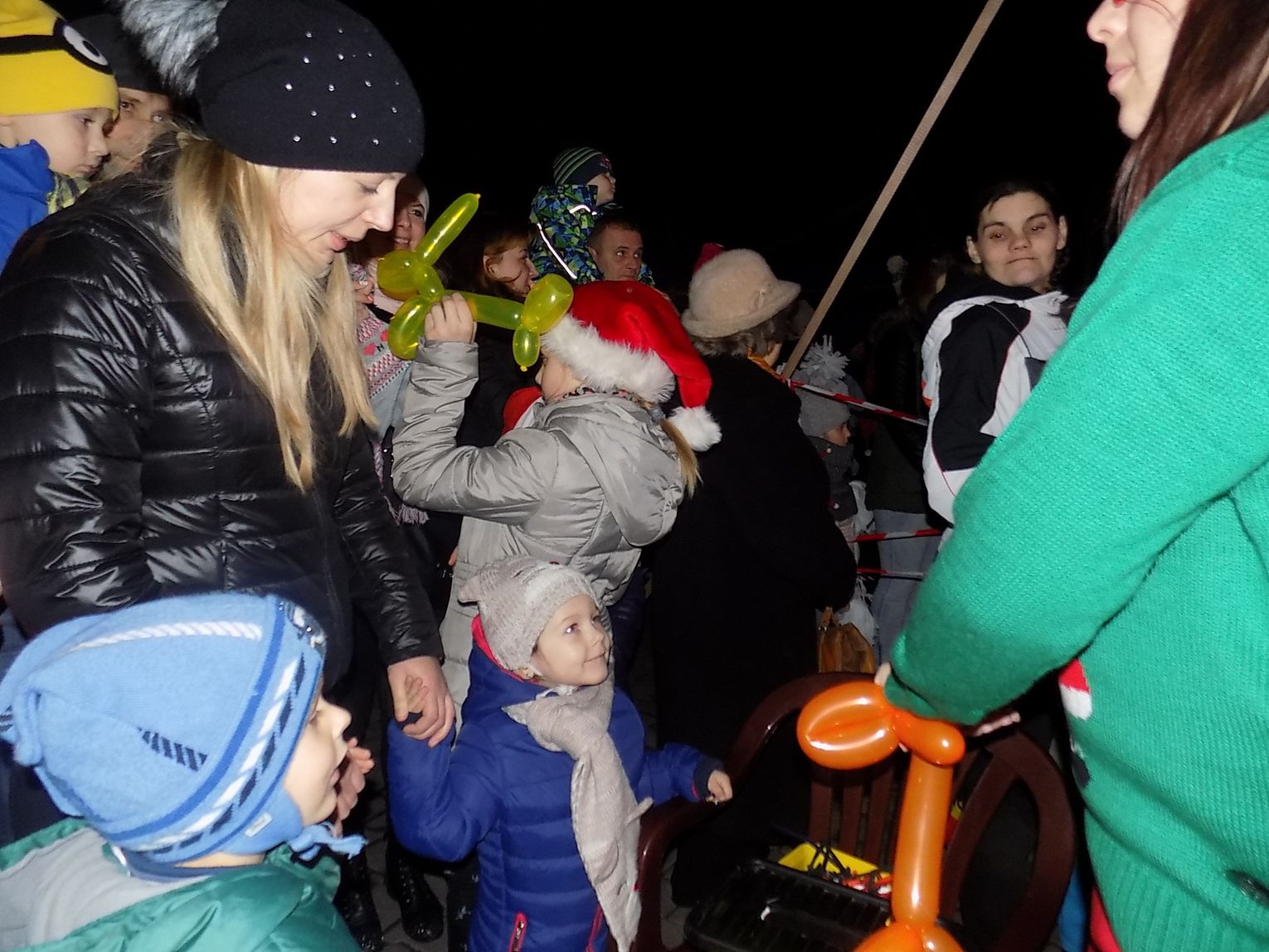 Wszystkim dopisywały znakomite humory. Zorganizowano konkursy, zabawy, organizatorzy zapewnili także nagrody. Po scenie i po placu wśród dzieci krążył mikołaj ze swoimi śnieżynkami i bałwankiem Olafem. Rozdawali cukierki i zapraszali do zabawy. Co raz ktoś się gubił, kogoś szukano, ale wszystko dobrze się kończyło.