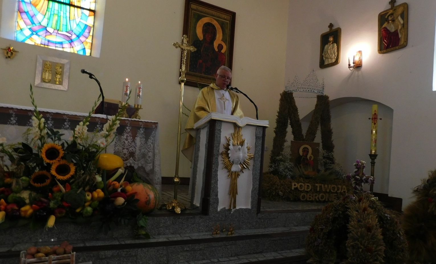Na stadionie na gości czekała przystrojona scena. Przybyłych powitali burmistrz Mieczysław Sawaryn i wiceburmistrz Paweł Nikitiński, dziękując rolnikom za ich trud i wysiłek.