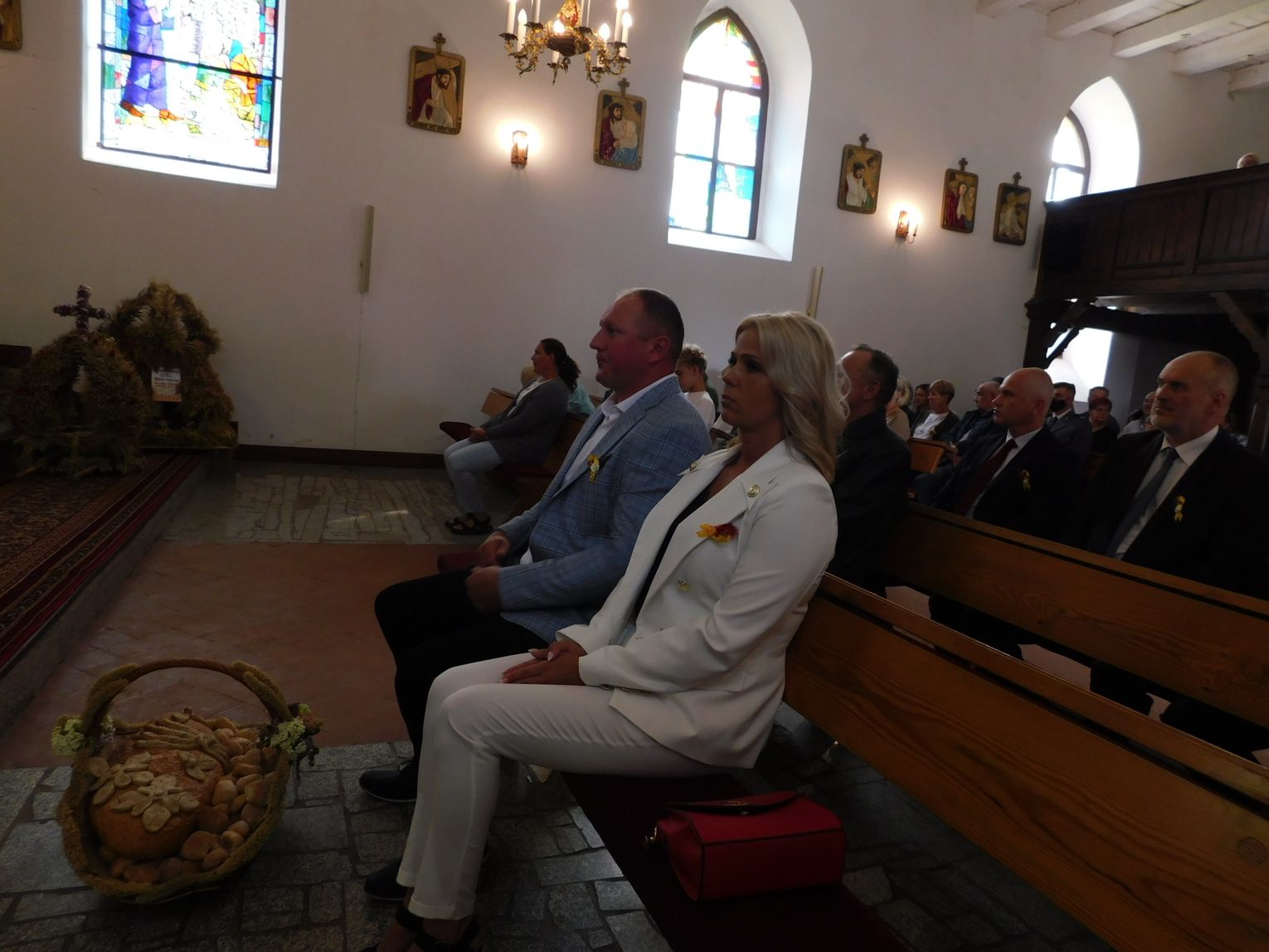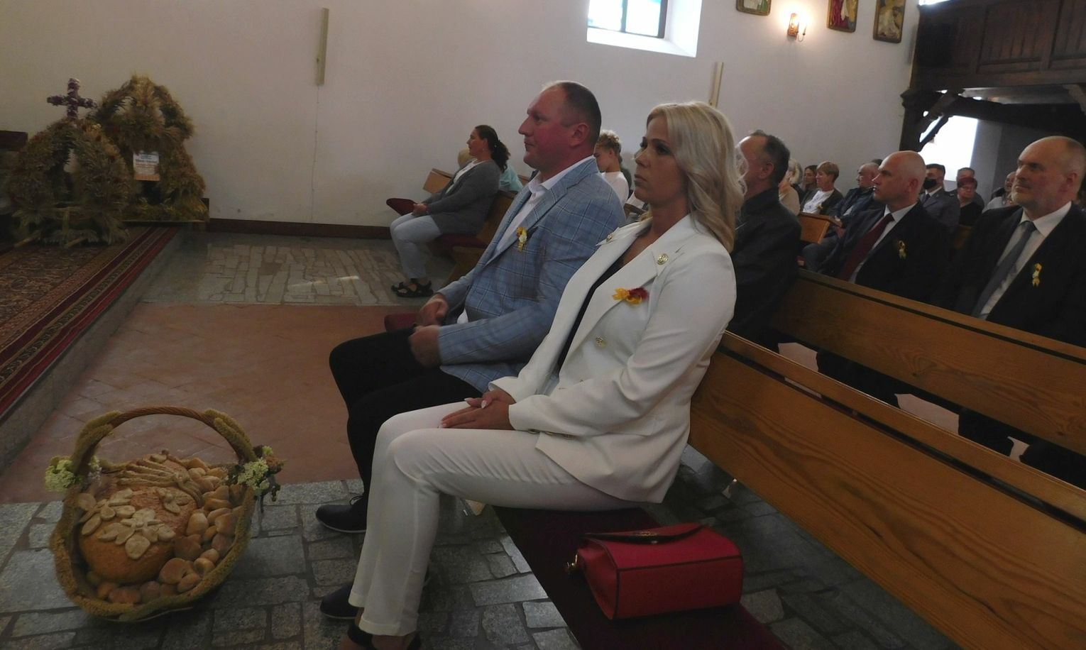 Starostowie dożynek Honorata i Martin Wróblowie przekazali burmistrzowi bochen chleba, prosząc by rozdzielił go sprawiedliwie.
