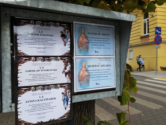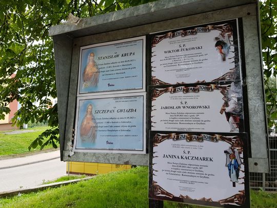 Na tablicach informacyjnych widzimy dziś (31 sierpnia 2021 r.) klepsydry z następującymi nazwiskami: