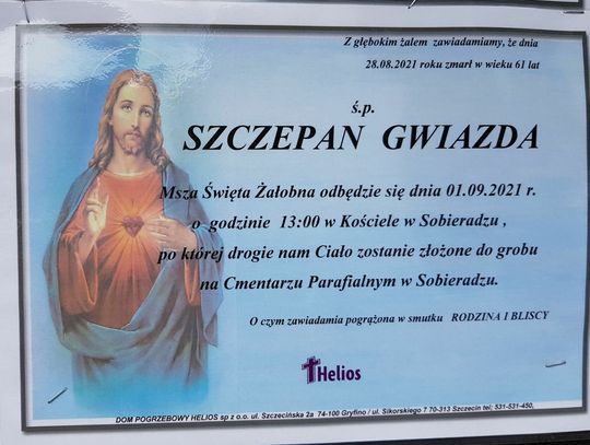 Szczepan Gwiazda - lat 61 (pogrzeb w Sobieradzu 1 września, msza żałobna o godz. 13)